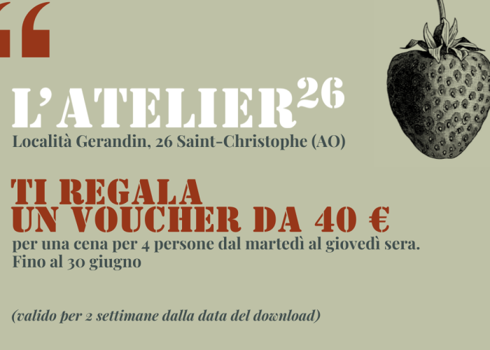 Il voucher è valido per due settimane dalla data di download e rappresenta un’occasione speciale per scoprire la cucina autentica de L’Atelier 26. Questa iniziativa è pensata come un invito a sperimentare i sapori e l’atmosfera del ristorante, offrendo un assaggio della proposta culinaria a chi desidera provare qualcosa di diverso.