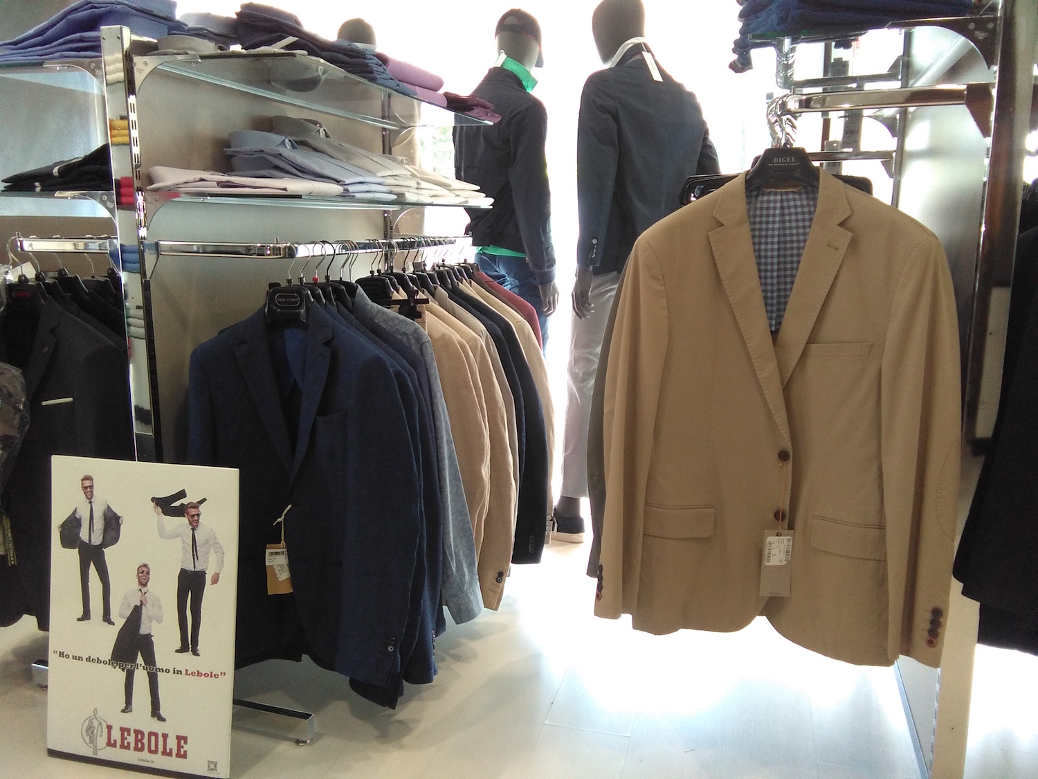 La qualità dei prodotti in vendita da 3 Commessi poi, parla da sola, a dimostrazione della ricerca che da sempre identifica il negozio di via Chambéry: quella della grande qualità a servizio di tutte le esigenze del cliente. Prodotti come i capi firmati Digel, marchio tedesco dall'anima profondamente italiana che si divide nella sua raffinata linea classica e nella “linea giovane” Digel Move.