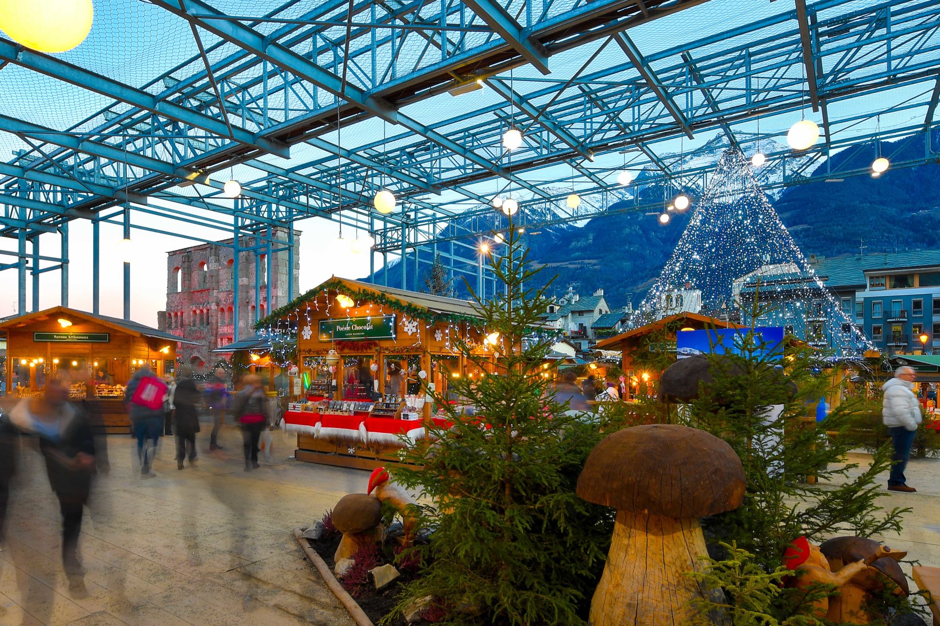Il grande classico è il Marché Vert Noël, il mercatino natalizio che trasforma un angolo “nobile” di Aosta – la splendida area nella quale, come un gioiello, è incastonato il Teatro romano – un villaggio alpino vero e proprio nel quale riscoprire tutta la magia dell’atmosfera natalizia, a caccia di idee regalo sia tradizionali che innovative, e “perdersi” tra i gusti e i sapori dei migliori prodotti enogastronomici valdostani, ma anche i profumi delle candele ed i colori dell’oggettistica, dell’antiquariato, dei vestiti e degli accessori esposti negli evocativi chalet.