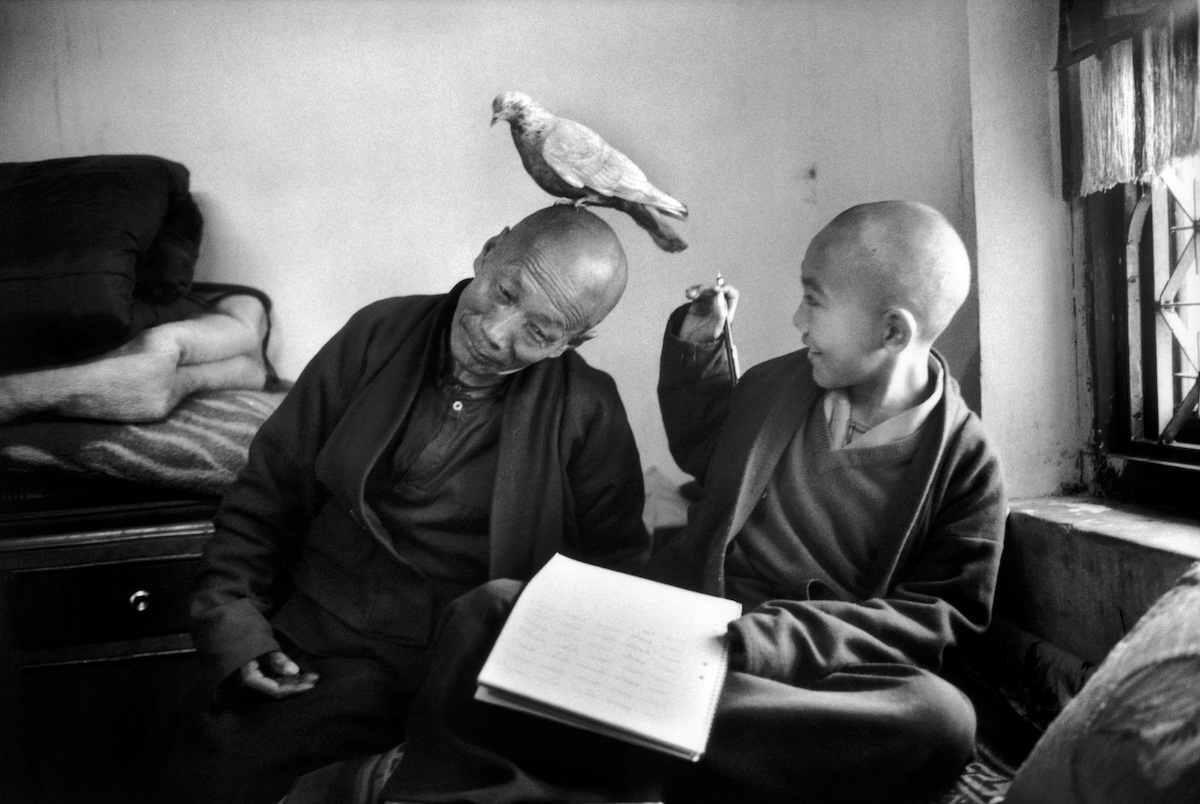 Tulku Khentrul Lodro Rabsel, 12 ans, avec son tuteur Lhagyel, monastère Shechen, Bodnath, Népal, 1996 – Martine Franck / Magnum Photos
