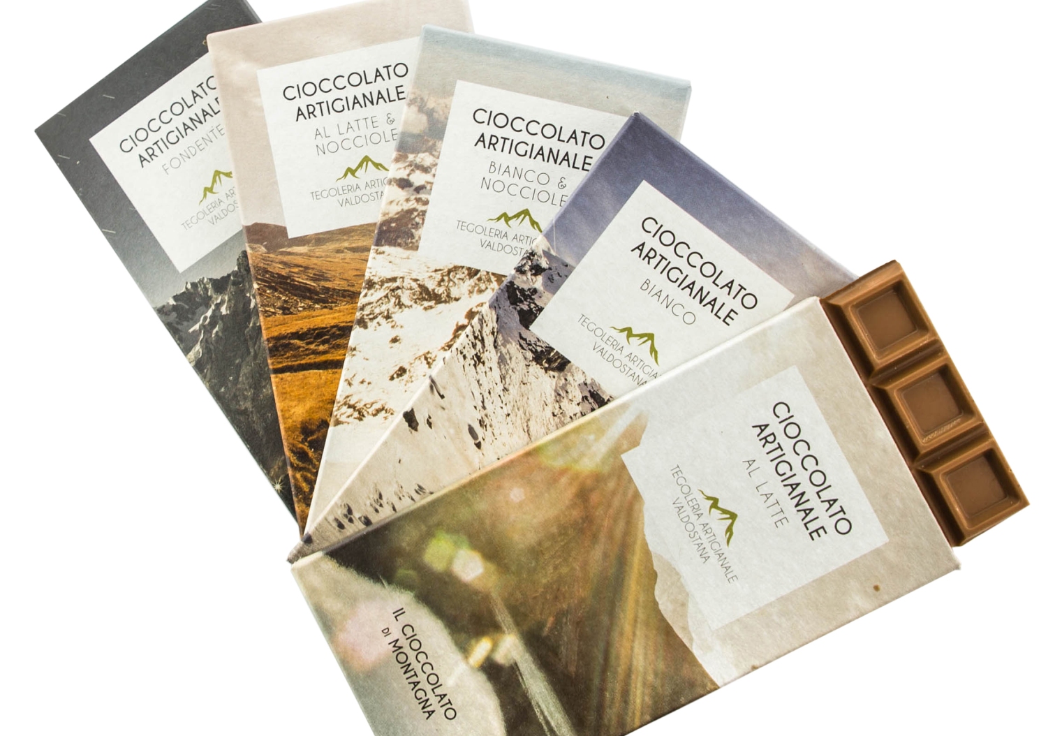 Il progetto è stato ideato da Giuseppe Giorgi, amministratore della Tegoleria Artigianale Valdostana, insieme al fotografo Luca Benedet, autore degli scatti presenti sulle sei confezioni e alla grafica curata dalla designer Antonella Giorgi: “L’idea è quella di proporre un cioccolato di ottima qualità, prodotto artigianalmente in Valle d’Aosta, nei nostri laboratori, e combinarlo con una confezione accattivante, una sorta di cartolina moderna dove sono ritratti i panorami di diverse vallate valdostane”, spiega Giorgi. Ognuna delle sei tipologie di cioccolato ha una coerenza cromatica o concettuale con l’immagine riprodotta sulla scatola, di cui vengono riportati i dettagli del luogo della fotografia.