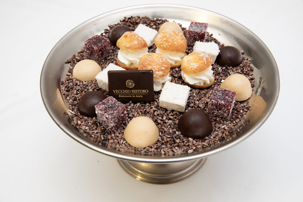 Senza dimenticare la selezione dei primi, come i gustosi Paccheri alla gricia al lardo di Arnad, passando per la raffinatezza di secondi unici come il Capriolo al gin e ginepro con purè di patate del Monterosa, o – passando ad uno dei “Re” d’acqua dolce in tavola – lo squisito Storione alla Mediterranea.