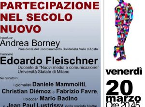 Il seminario, aperto a tutti, si svolge venerdì 20 marzo dalle ore 20.45 presso il CSV. Propone il confronto tra alcuni blogger valdostani e Edoardo Fleischner della statale di Milano. Rientra nel percorso "La partecipazione a portata di click".