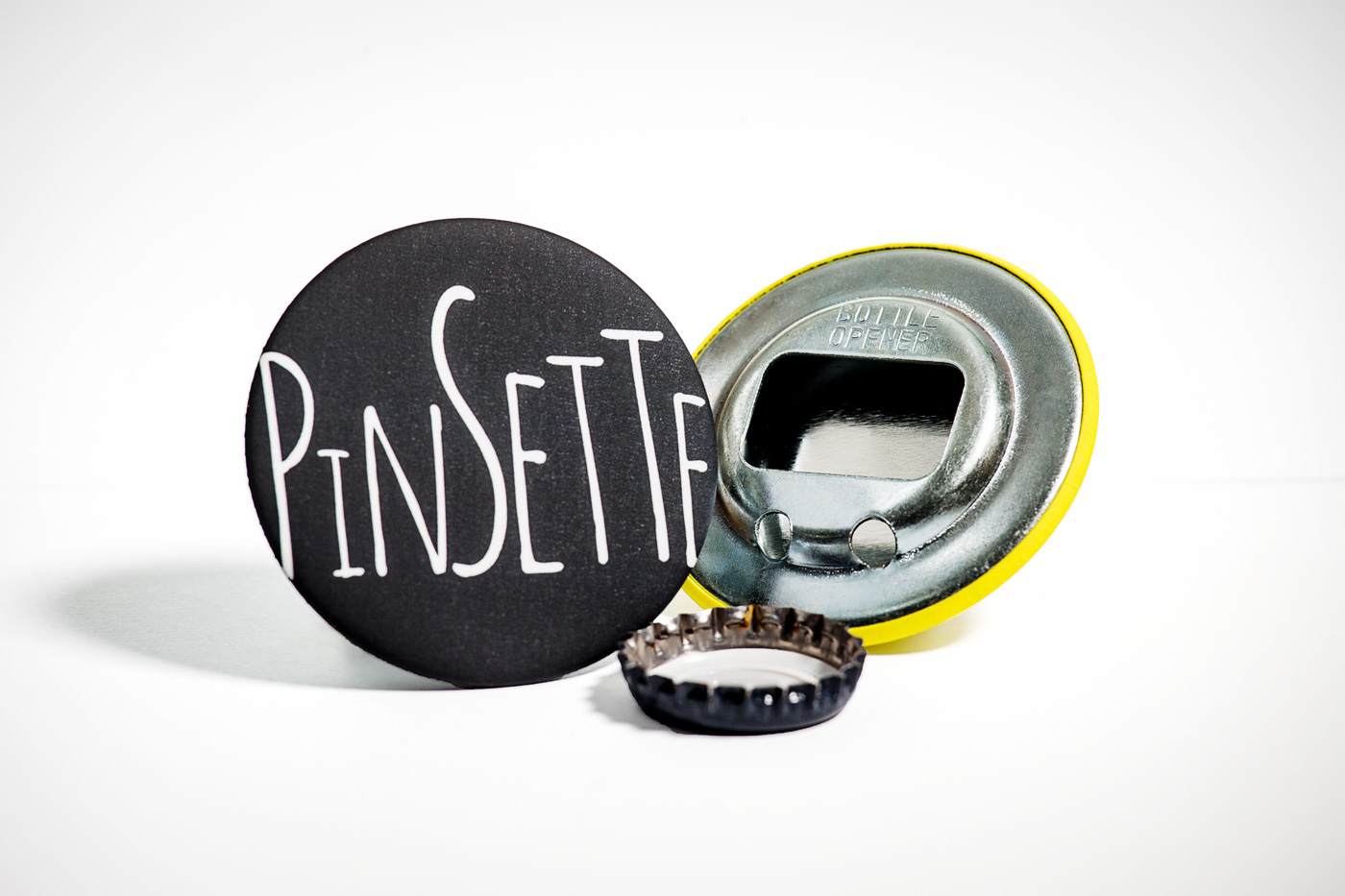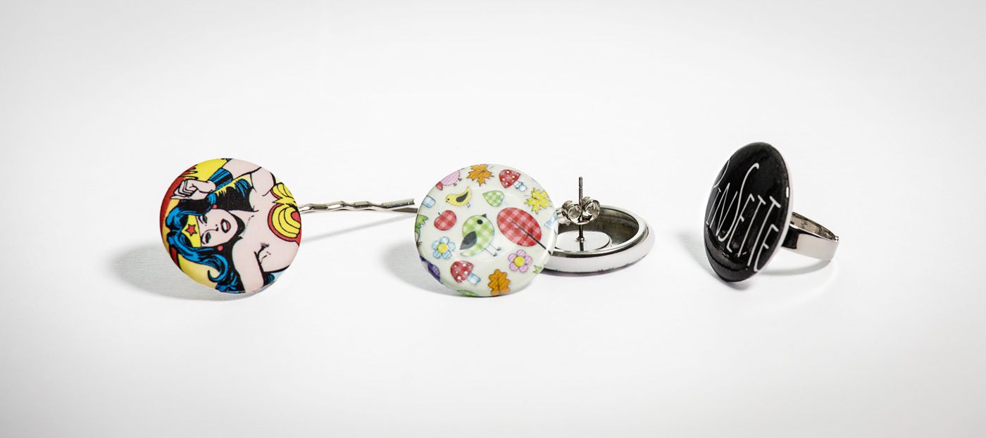 In fatto di spille, Pinsette, si può dire, che “ne fa di tutti i colori”. Piccole, grandi, di forme diverse, anche in piccole quantità, per eventi privati, aziende, prodotti, ricorrenze. E tutte assolutamente personalizzate. “Piccole quantità e un lavoro che punta sulla qualità a partire dalla possibilità di realizzare graficamente la spilla esattamente come la si vuole sono gli atout che mi differenziano dai servizi più standard del web” ci spiega Alessandro. “Per descrivermi mi piace l’immagine del pasticciere che prepara le torte di compleanno su misura a partire dal gusto dei clienti”.