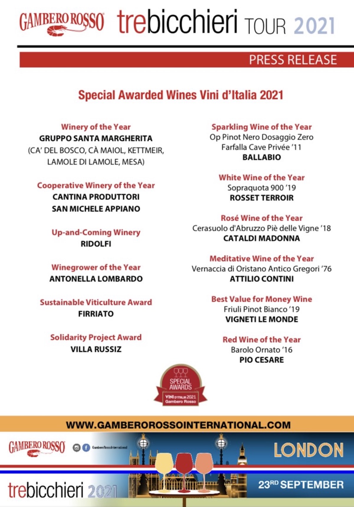 Lo scorso 23 settembre la Hacney Town Hall di Londra è stata il teatro di “Tre Bicchieri 2021”, la manifestazione legata alla prestigiosa guida ai Vini d’Italia curata da Gambero Rosso, che ha celebrato – evento finalmente tornato in presenza –, una selezione delle migliori produzioni enologiche italiane.