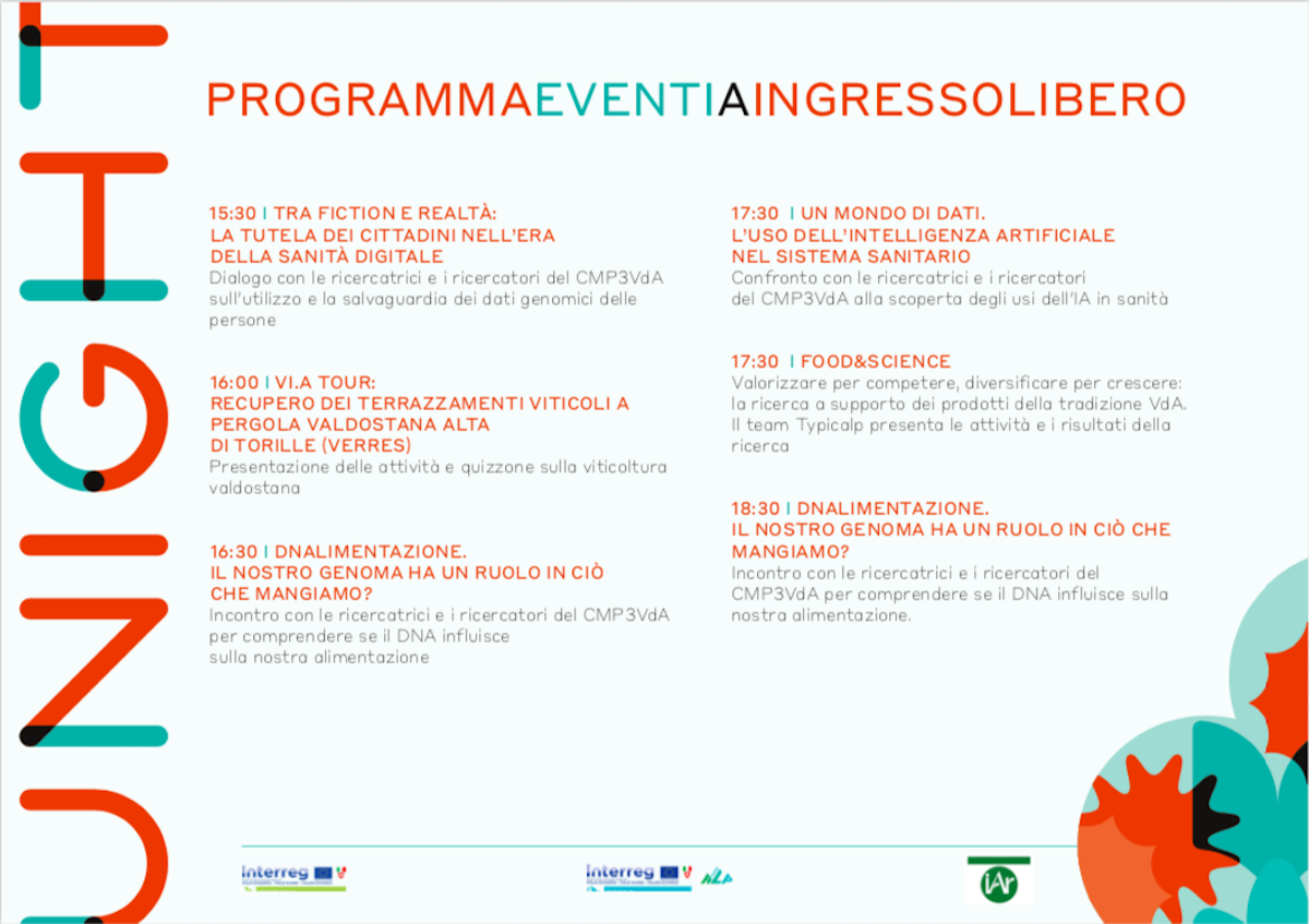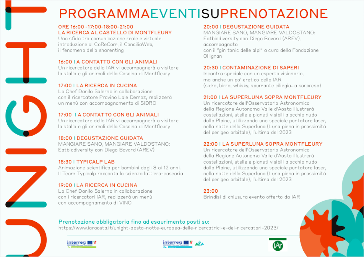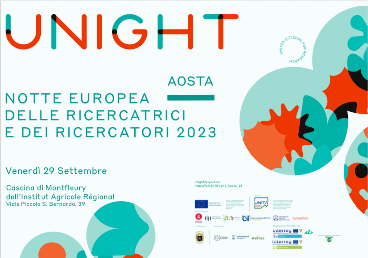 Torna l’appuntamento con Unight, la Notte Europea e Italiana dei Ricercatori e Ricercatrici in programma alla Cascina di Montfleury dell’Institut Agricole Régional, ad Aosta, venerdì 29 settembre.