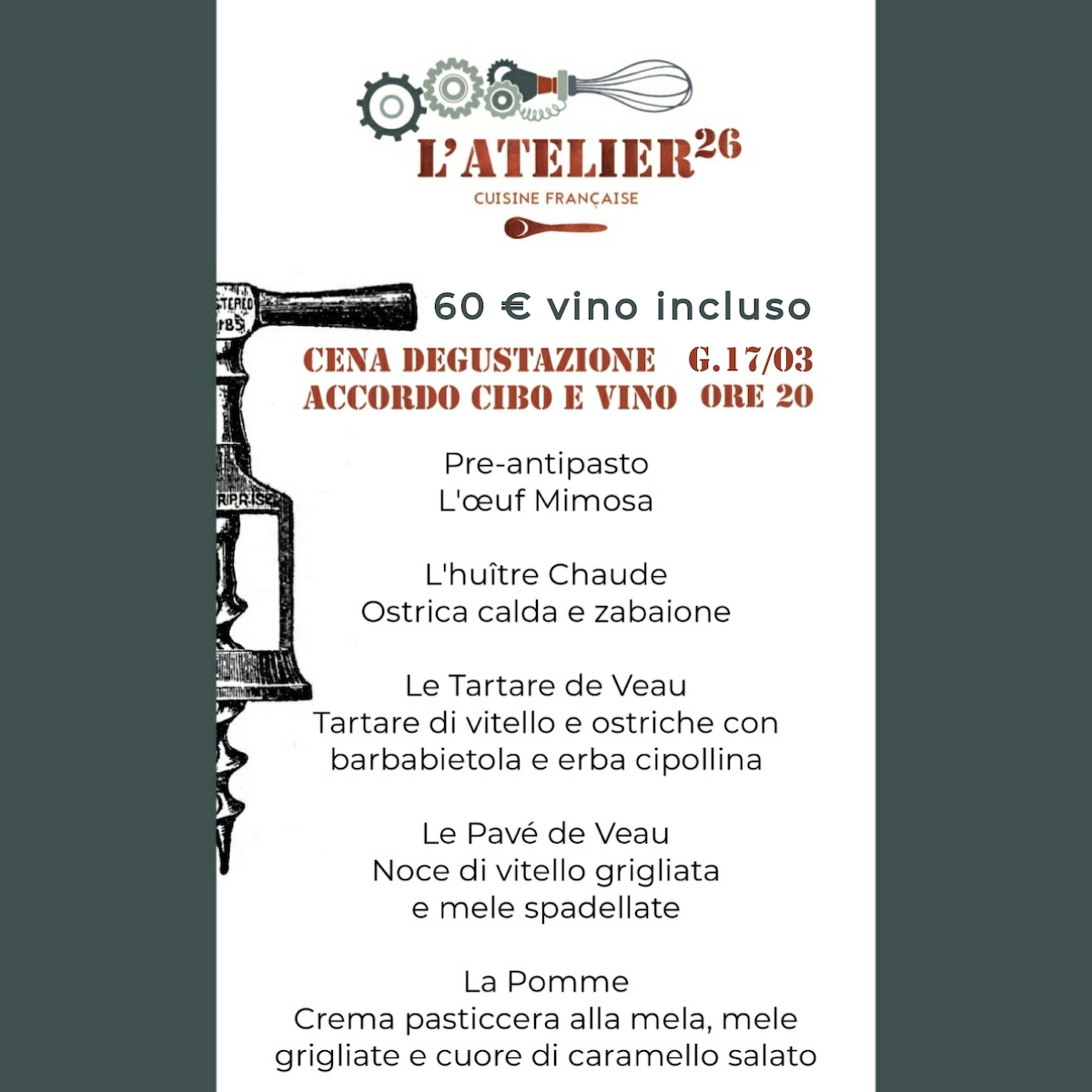 Ma l’Atelier 26 non è solo un luogo in cui mangiare, e mangiare molto bene. È anche un luogo di scoperta e di conoscenza. Una volta al mese, infatti, è possibile partecipare agli appuntamenti tematici alla scoperta, di volta in volta, di una precisa regione della Francia. Un vero e proprio itinerario di degustazione nella cucina d’oltralpe per viaggiare tra i sapori comodamente seduti a tavola.