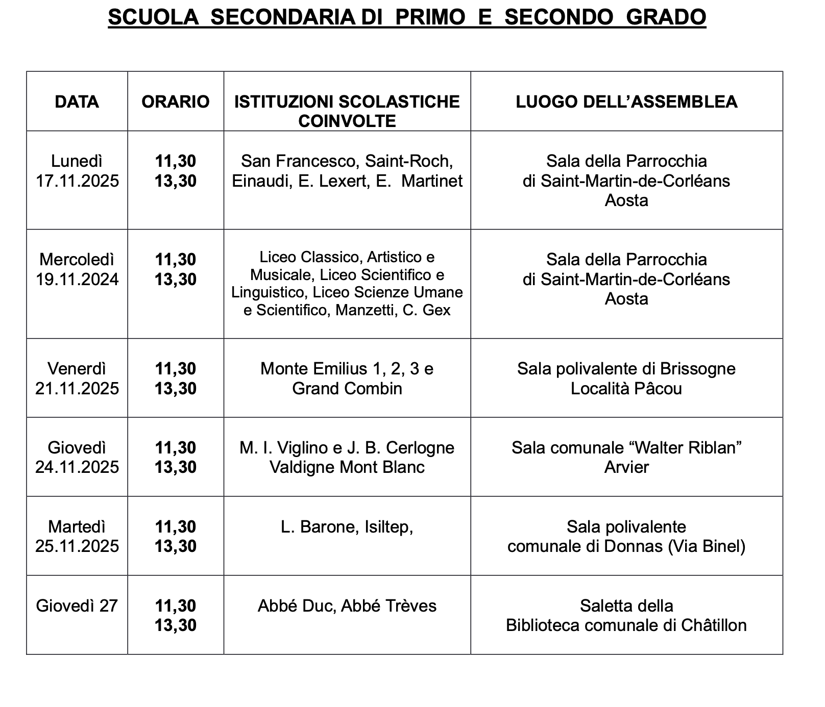 Inizierà lunedì 17 novembre 2025 il ciclo di assemblee organizzato da Cisl, Savt e Snals, che coinvolgerà gli insegnanti di ogni ordine e grado delle scuole pubbliche valdostane (compresi gli educatori del Convitto Chabod che sono contrattualizzati con il suddetto CCNL) per illustrare il testo del CCNL 2022/24- parte economica.