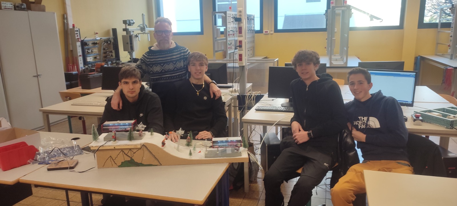 Al centro delle due settimane c’è stato un compito concreto: cablare e programmare un modellino di funivia, lavorando in gruppo e mettendo insieme competenze di automazione, collegamenti e logica di controllo. Il lavoro si è chiuso, in entrambi i periodi, con una piccola presentazione finale del progetto e del funzionamento della maquette. Tra le attività tecniche sono rientrate anche le uscite legate agli impianti, con visite che hanno permesso di osservare da vicino sistemi e soluzioni reali, come quelle dell’area del massiccio del Monte Bianco.