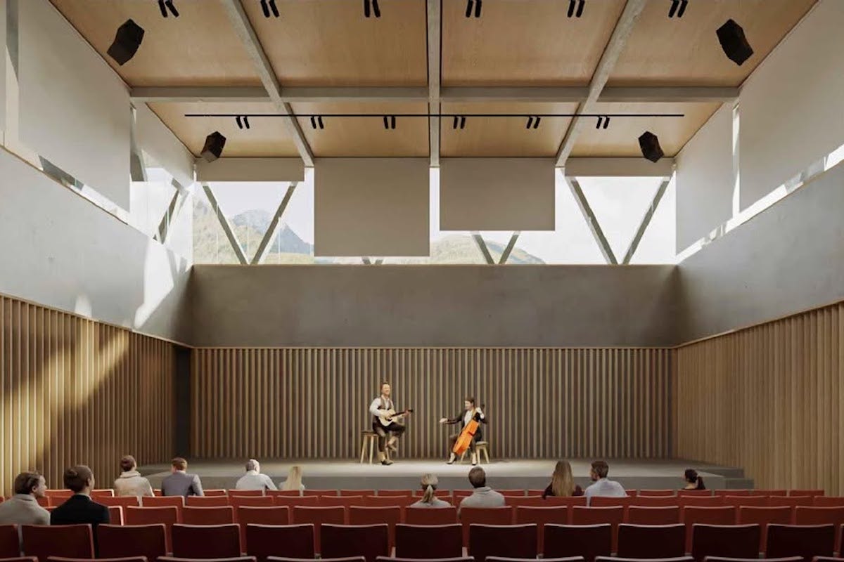 Il progetto si sviluppa su quattro piani fuori terra nei quali troveranno collocazione gli spazi amministrativi per il personale dell’Istituzione scolastica, i numerosi laboratori dei licei artistico e musicale che saranno ospitati nel nuovo edificio e le aule didattiche, oltre ad un piano interrato e ad un mezzanino che ospiteranno il parcheggio, il foyer e l’auditorium, ma anche la palestra, i depositi e gli archivi.