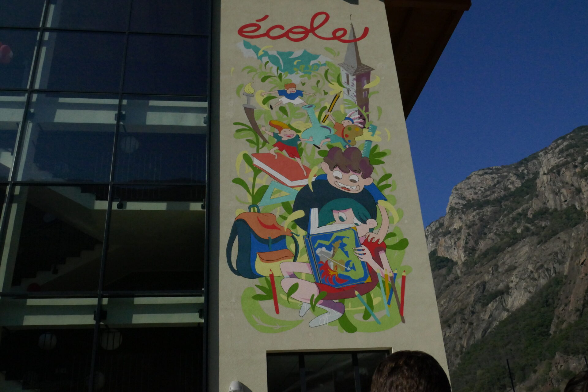 L’imponente scuola che vediamo ora, decorata con un colorato murales sul lato e dalle ampie vetrate “è frutto di scelte di diverse amministrazioni che possono sembrare folli, ma che io direi siano lungimiranti” sostiene Guichardaz “A volte serve il coraggio di ricostruire e buttare giù quello che è stato, per ricominciare e rinnovare con uno spirito diverso”.