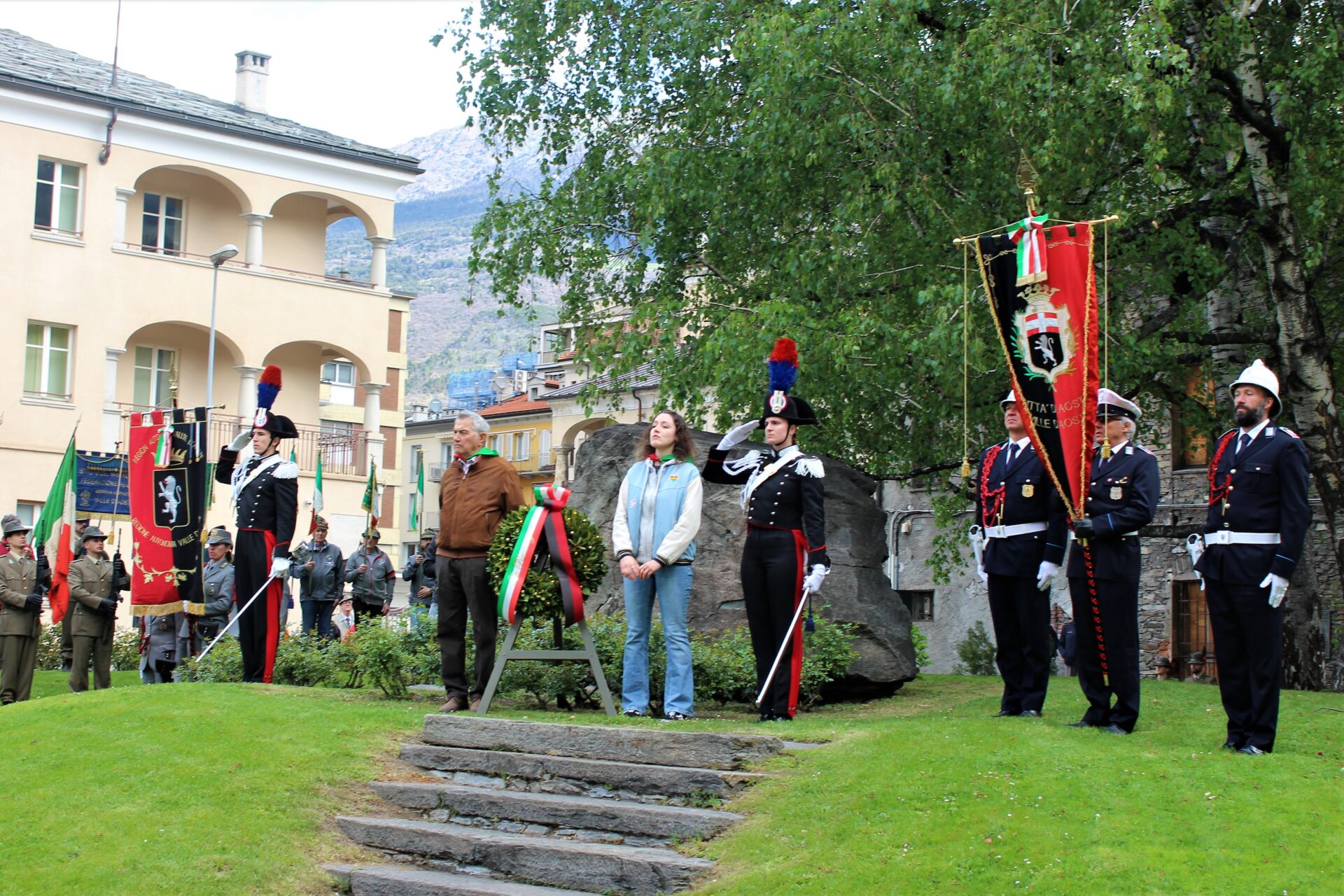 A Courmayeur, alle 10 era in programma la cerimonia commemorativa davanti al Monumento della Liberazione, vicina al Municipio del paese alle pendici del Monte Bianco. Qui, dopo la deposizione di una corona si è tenuto discorso del sindaco Roberto Rota.