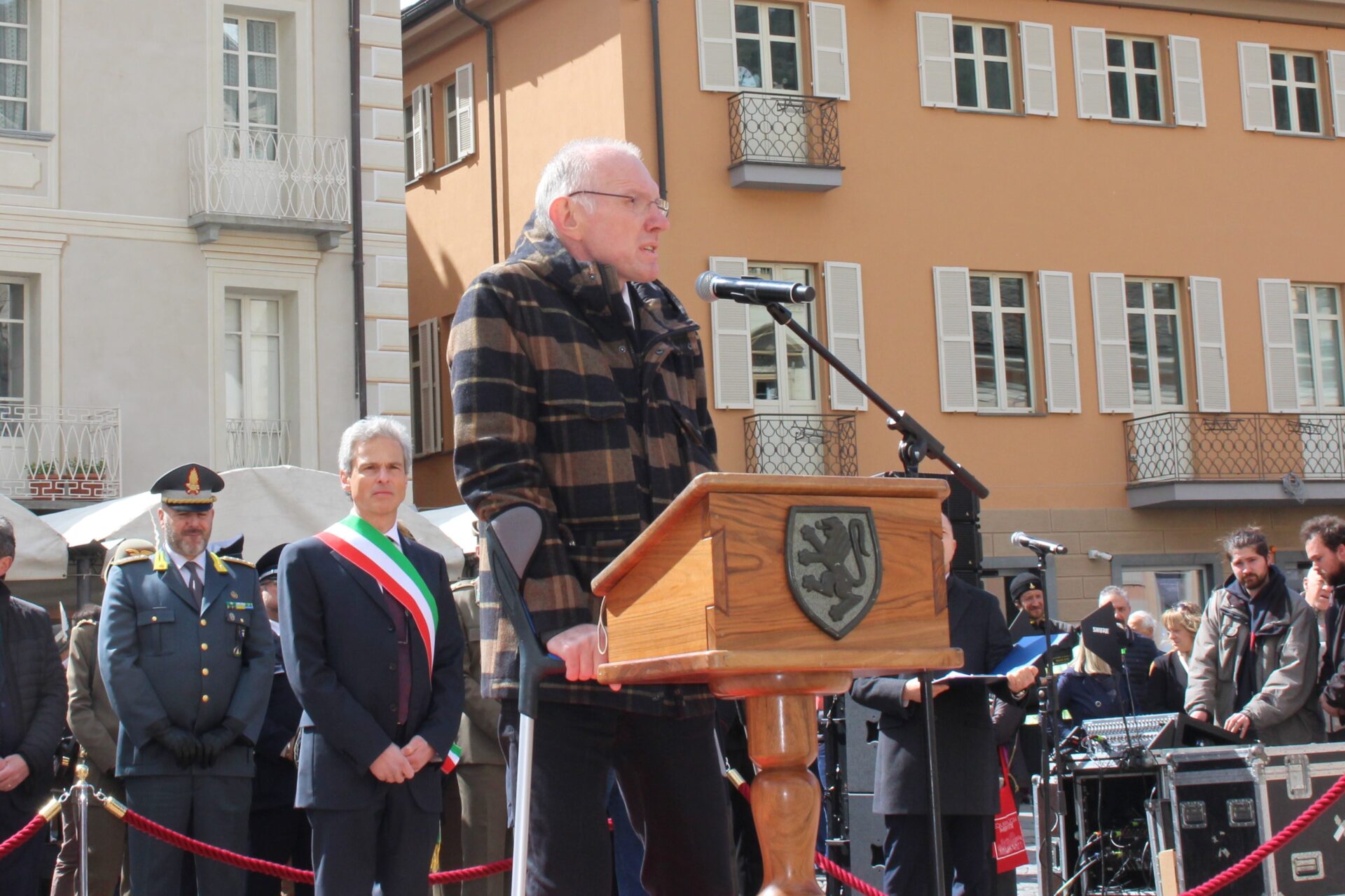 Al monito di Carlo Ghezzi è seguito l’intervento del presidente della regione Renzo Testolin, che ha ribadito l’importanza di difendere i principi fondamentali della nostra Costituzione. “Le conquiste politiche, sociali, culturali, i diritti, la libertà di opinione, di voto, di associazione, di cui oggi godiamo, si radicano proprio nel 25 aprile – ha detto -. La Valle d’Aosta ha svolto un ruolo cruciale ed eroico nella delicata fase della Liberazione. Sono numerosissimi gli episodi di coraggio compiuti, tantissime le persone che diedero, a ogni livello, il loro contributo. E nella nostra regione la Resistenza ha assunto caratteri specifici che l’hanno contraddistinta fortemente e ne hanno fatto il terreno fertile in cui è germogliata la nostra autonomia”.