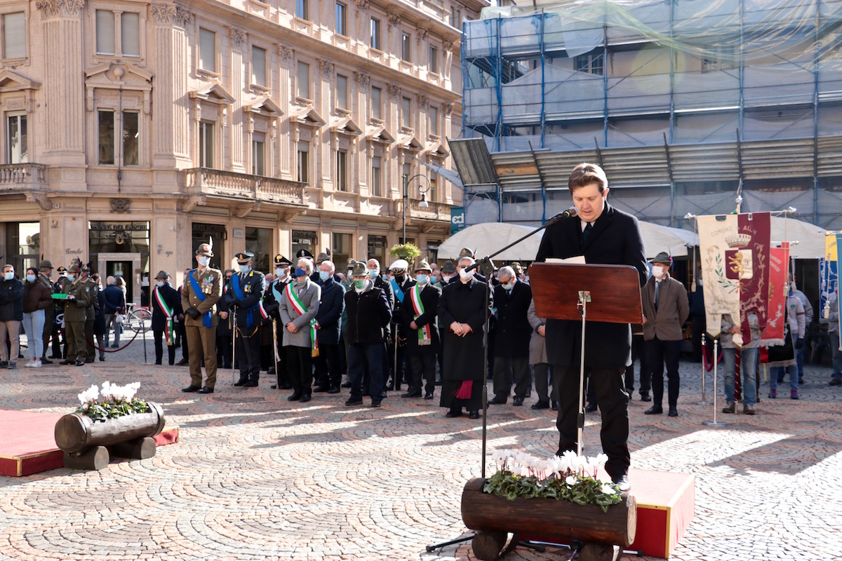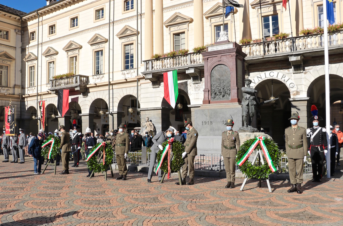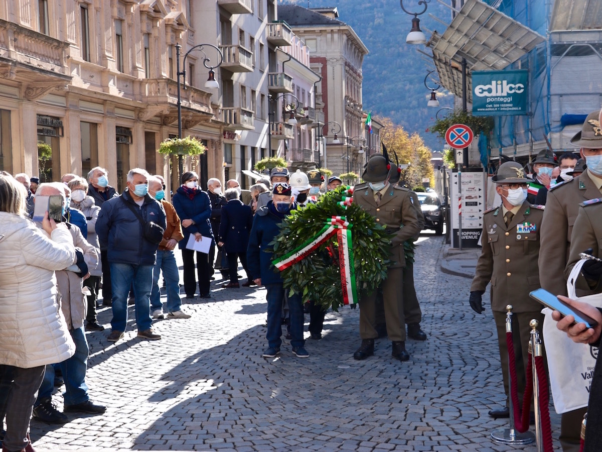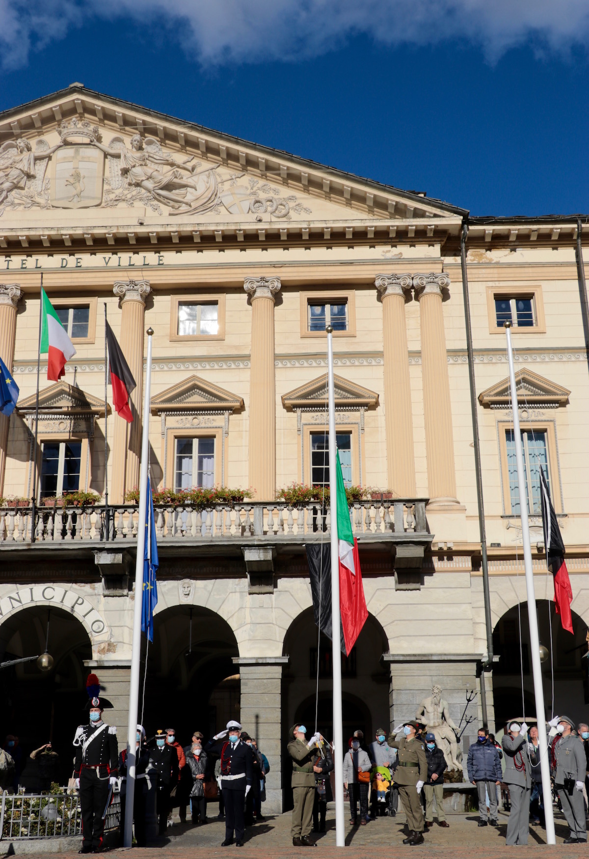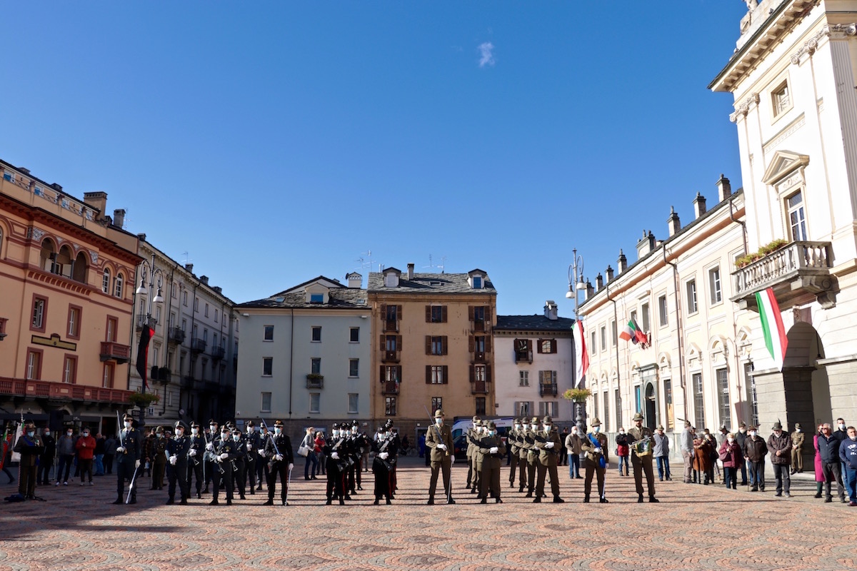 La cerimonia ha avuto inizio con l’alzabandiera, accompagnato dall’Inno di Mameli suonato dalla banda comunale, seguita dalla deposizione delle corone al monumento accompagnati dai discorsi del Presidente Lavevaz, del Sindaco Nuti e del Comandante Matteo Spreafico che hanno ricordato le motivazioni della cerimonia. Questi interventi hanno evidenziato l’eccezionalità dell’occasione che, a più di 100 anni dalla firma dell’armistizio della prima Guerra Mondiale, celebra le Forze armate italiane e il loro ruolo nel mantenimento della pace e come garanti della sicurezza nazionale. “Crediamo perciò che le Forze armate non meritino solo un tributo solenne di gratitudine per il sacrificio che hanno compiuto nel passato per la difesa di un’identità di popolo, ma anche per il loro ruolo attuale e futuro di portatori di speranza e di ricostruzione, per la loro capacità di trasformarsi, al bisogno, in soccorritori avveduti e competenti della nostra gente, ma soprattutto, di essere garanti e custodi della democrazia nella Repubblica italiana e nel continente europeo pacificato” dichiara il Sindaco Nuti.