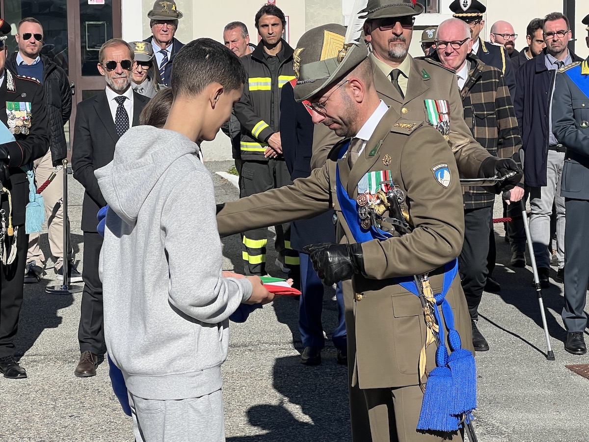 Durante la cerimonia, aperta dalla lettura dei messaggi celebrativi del presidente della Repubblica Sergio Mattarella e del ministro della Difesa Guido Crosetto, è stata altresì consegnato, dal vice comandante del Centro Addestramento Alpino, colonnello Alessandro Nossen, un tricolore all’istituzione scolastica “Eugenia Martinet”.