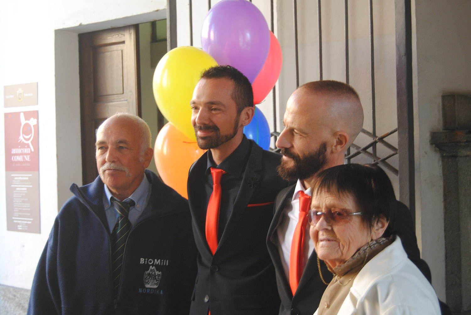 A sposarsi, nella sala consiliare, David Angelini e Giancarlo Giambrone, che hanno atteso a lungo questo momento: “È una giornata fantastica – commenta Giambrone al termine della cerimonia – , la dimostrazione che anche in una realtà 'piccola' come Aosta ci si può unire civilmente, senza paura”.