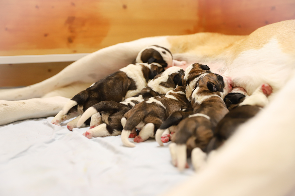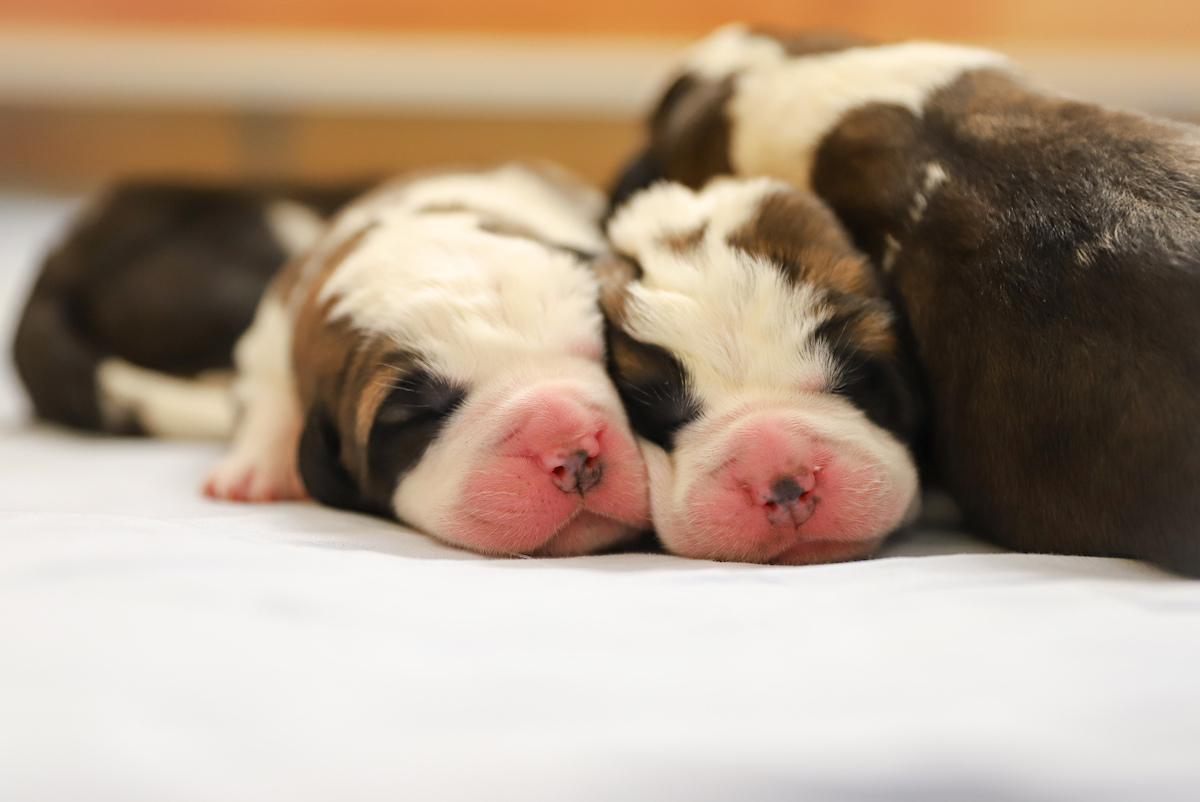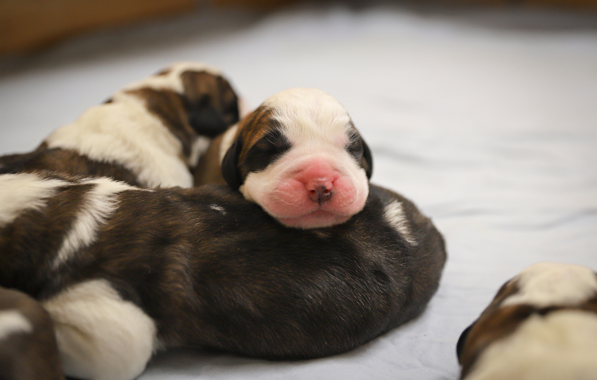 Nelle prime ore del mattino del 20 novembre sono nate le quattro femmine e i cinque maschi di “Athena du Grand St. Bernard”, femmina a pelo corto di tre anni e mezzo. Il papà dei cuccioli è il San Bernardo a pelo lungo di due anni e mezzo “Dasty du Grand St. Bernard”, anch’esso nato alla Fondation Barry e riconosciuto quale maschio da riproduzione da quest’anno.