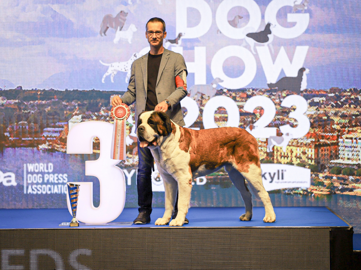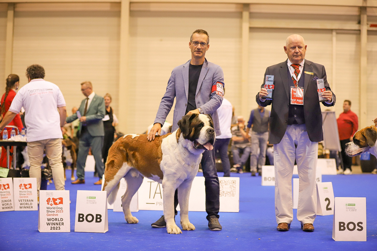 V’Barry du Grand St. Bernard” è invece stato incoronato campione del mondo al World Dog Show di Ginevra lo scorso sabato 26 agosto, ottenendo il riconoscimento di migliore della sua razza su ben 25 cani in lizza.
