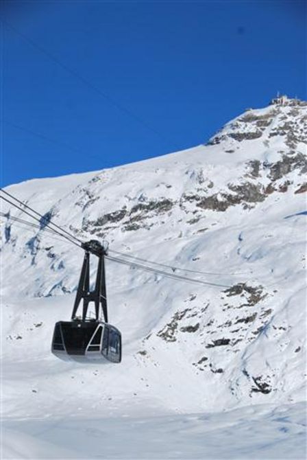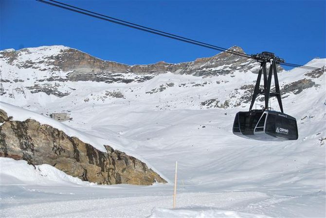È entrata in funzione ormai da due settimane, in concomitanza con l’apertura invernale della stagione 2011/2012 degli impianti sciistici di Breuil-Cervinia, la “nuova” funivia del Cervino che, come la precedente, da località Cime Bianche Laghi(2816 metri s.l.m.) porta gli sciatori e i visitatori fino ai 3458 metri del Plateau Rosa.