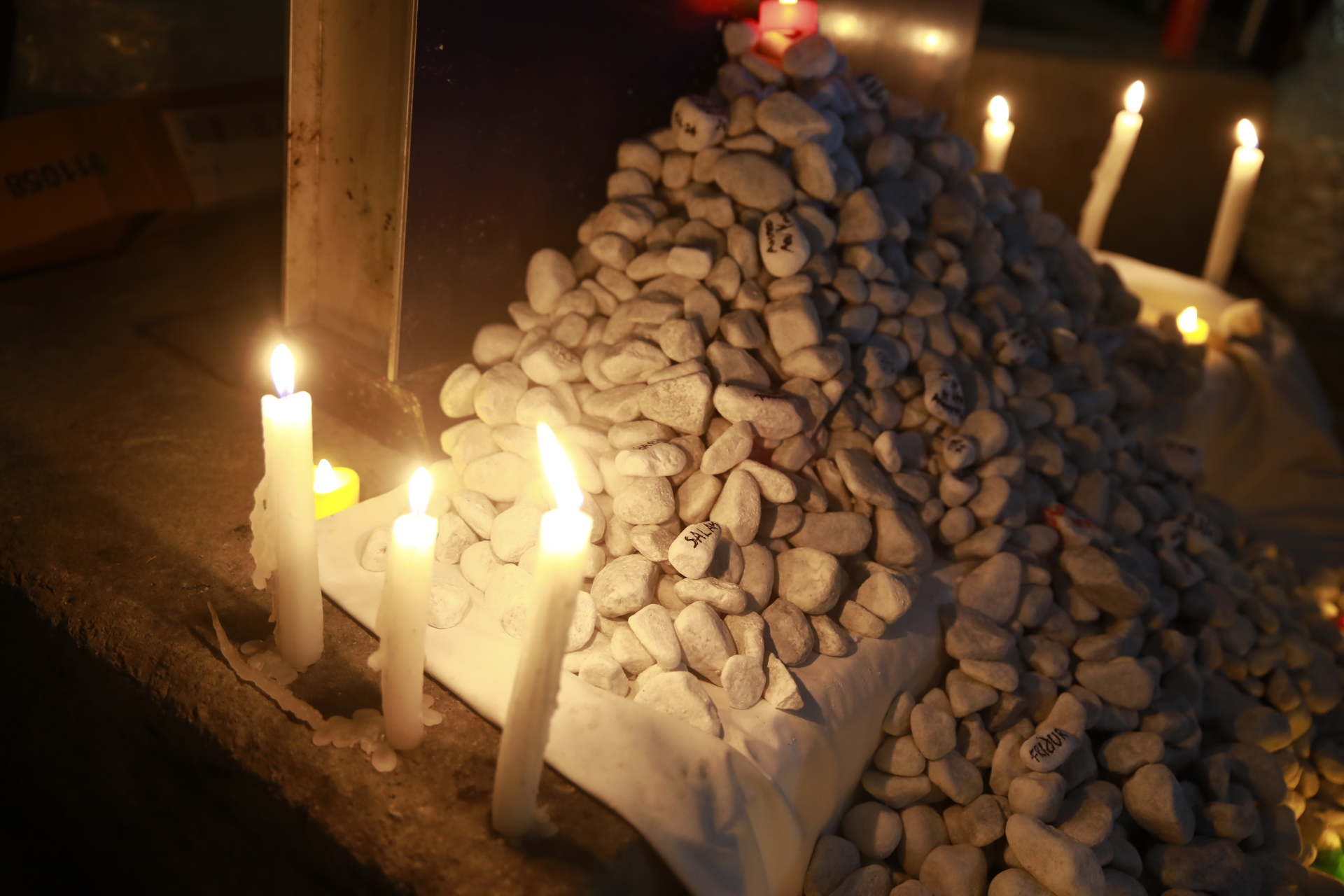 La manifestazione si è aperta con l’accensione delle luci – torce, candele e lampade – seguita da un saluto della rete #digiunogaza. È poi iniziata la lettura collettiva dei nomi dei sanitari uccisi a Gaza (ogni Regione italiana ha curato un pacchetto di nomi, circa un centinaio, creando una staffetta simbolica da Nord a Sud), scritti su piccoli sassi e ciottoli, deposti uno ad uno dai partecipanti ai piedi di una bandiera della Palestina, illuminata da tanti lumini: un momento intenso che ha unito i presenti in una lunga processione, carica di significato, e conclusa dal grido comune “Palestina libera!”