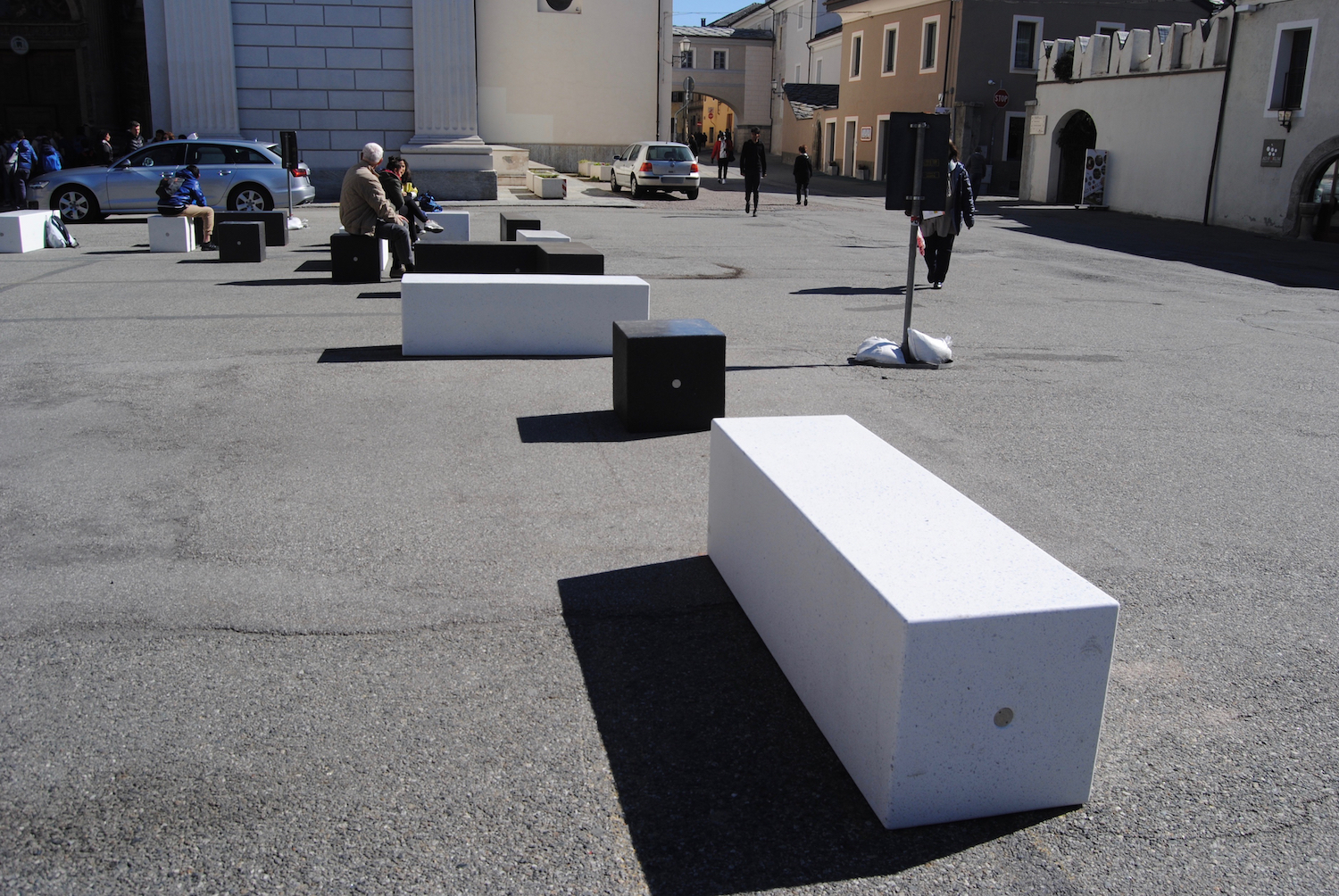 Annunciate venerdì scorso in conferenza stampa di giunta comunale, nel pomeriggio di ieri – lunedì 25 marzo – hanno fatto il loro esordio anche in piazza Giovanni XXIII le “sedute” bicolori in pietra e cemento, amovibili e omologhe a quelle posizionate nell’area semipedonalizzata dell’Arco di Augusto.