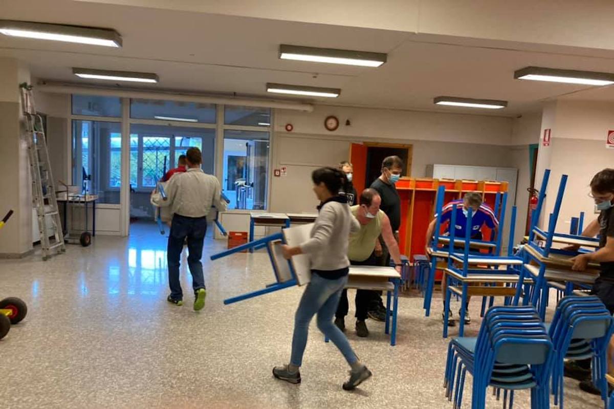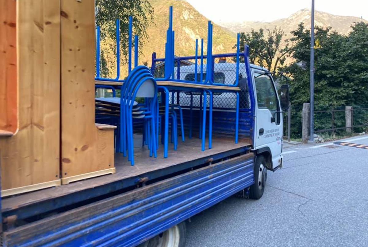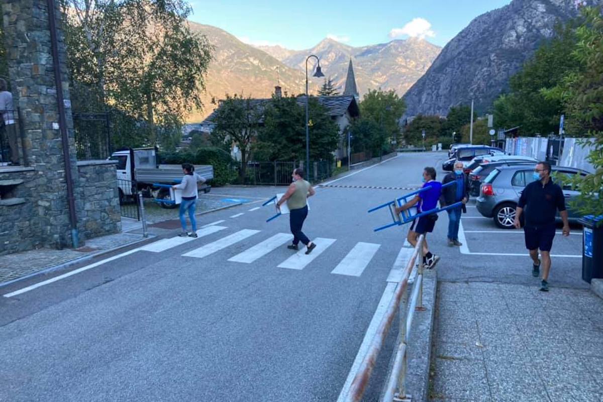 Arnad, infatti, si è mobilitata: “Oltre a dover decidere in meno di 24 ore di spostare l’intera scuola, tra l’altro in un momento molto particolare dovuto all’emergenza sanitaria per il contenimento del Covid-19 con regole molto ferree sul comportamento da tenere per lo svolgimento delle lezioni – scrive Bonel –, trovare i locali all’interno del ‘Foyer des associations Donato Nouchy’dove hanno sede tutte le associazioni di Arnad, ieri si è posto anche il problema del trasloco degli arredi. Dopo l’ennesima riunione abbiamo deciso di coinvolgere ancora una volta le associazioni del paese per eseguire lo spostamento dei banchi, lavagne, cattedre, supporti informatici. Dopo un giro veloce di telefonate fatte ieri sera, stamattina alle 8 ben 35 persone si sono presentate per dare una mano, tra l’altro alcuni ragazzi prendendo addirittura dei permessi dal lavoro, e in meno di 3 ore abbiamo spostato il tutto”.