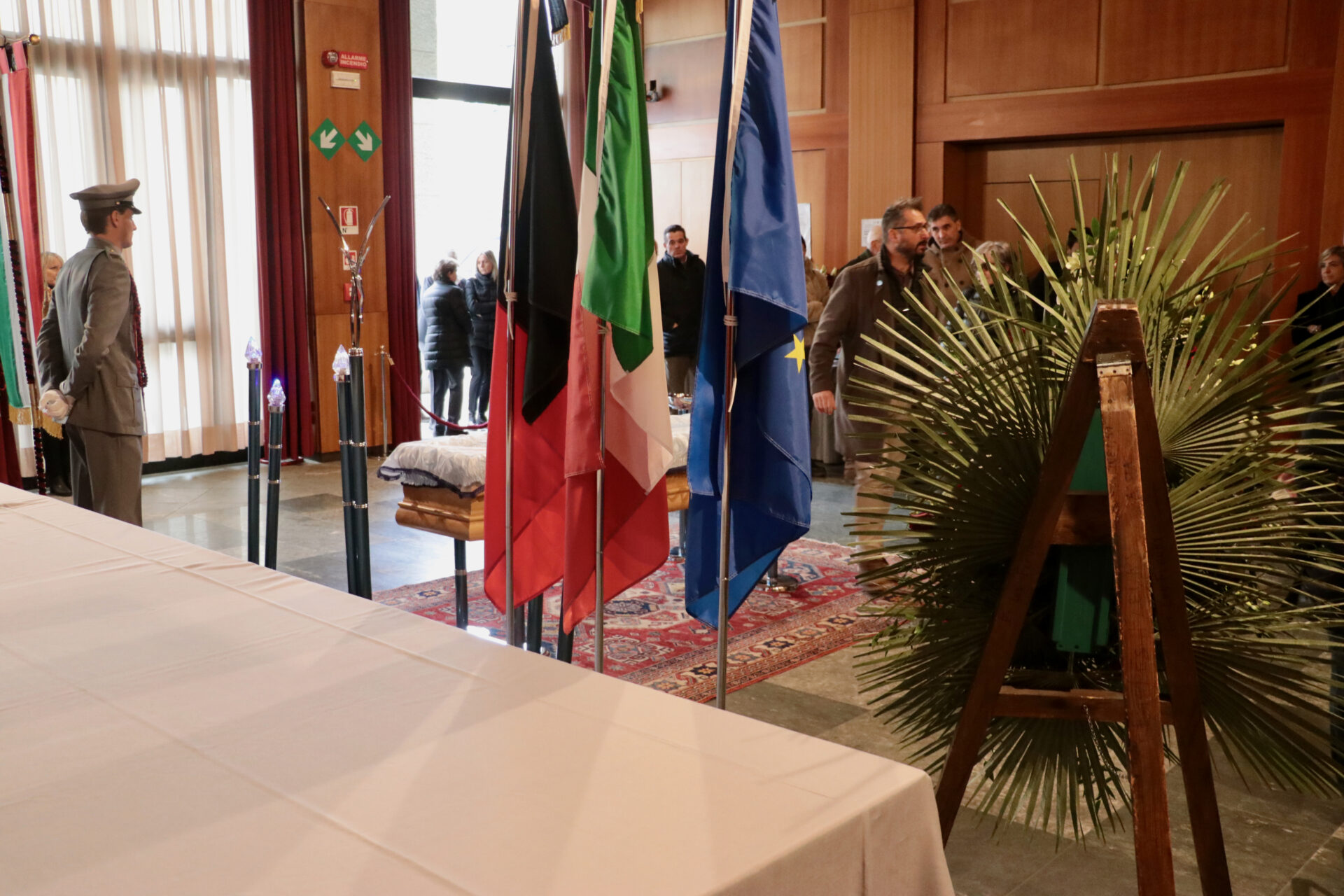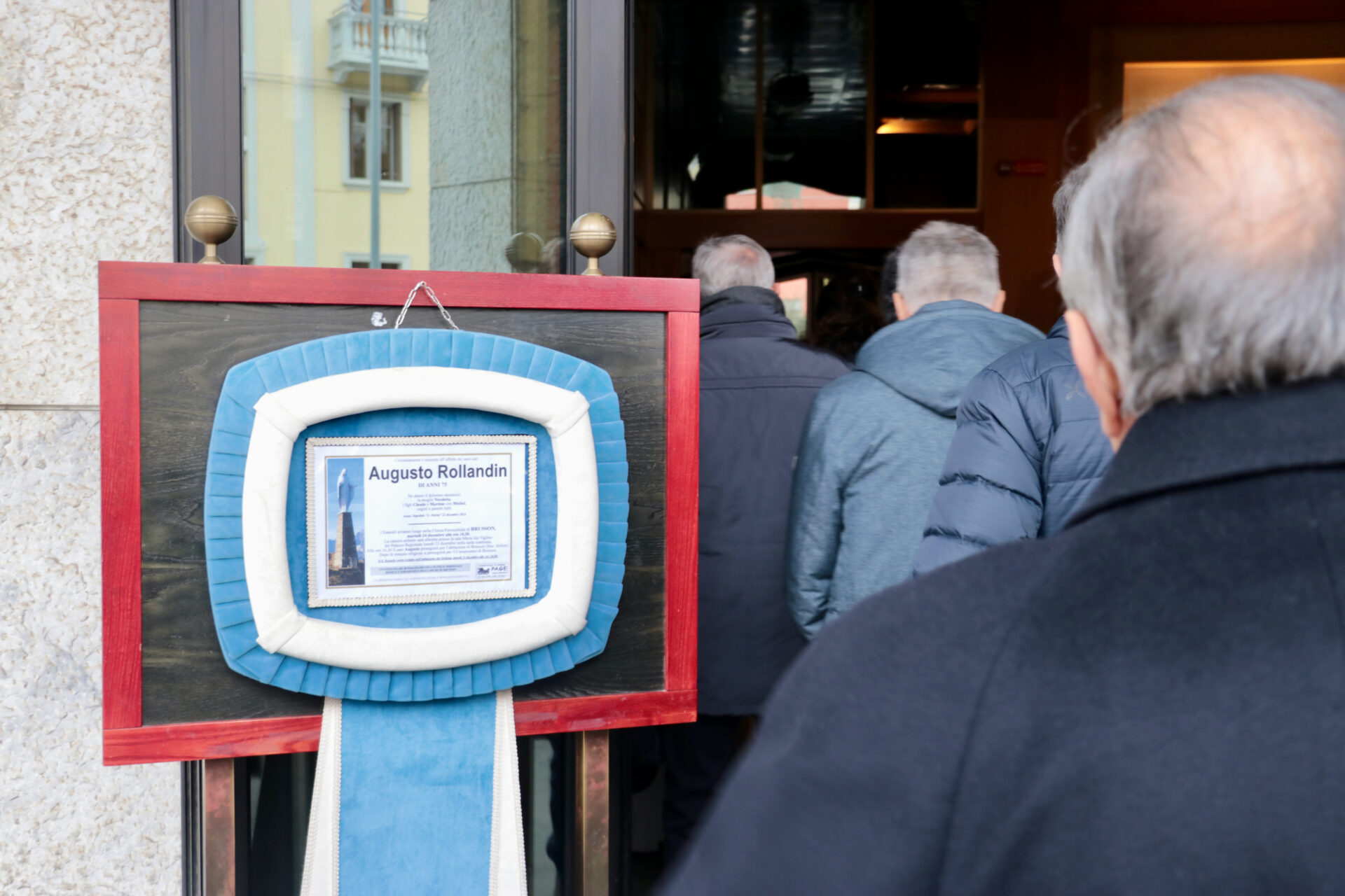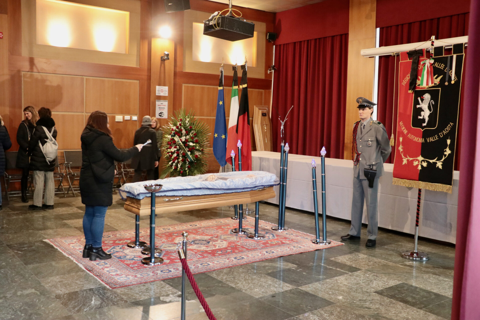 Le persone, in fila, sono silenziose. Ci sono diversi rappresentanti politici e amministratori, di oggi o ormai in retraite. Amici di oggi e di ieri, ma anche avversari politici. Rappresentanti dell’Union Valdôtaine che fu, di quella di oggi, e di altri partiti e movimenti.