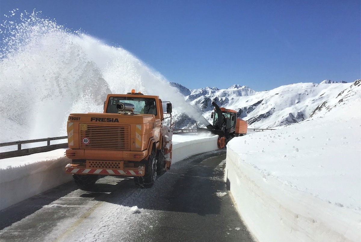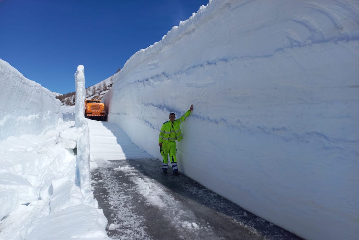 Lungo la statale 27 le frese sono invece in azione dalla prima metà di aprile e stanno procedendo in direzione del Colle del Gran San Bernardo che raggiunge i 2.400 metri di quota in corrispondenza del confine con la Svizzera. Gli accumuli di neve più importanti si attestano, per il momento, tra i 2,5 e i 4 metri di altezza.