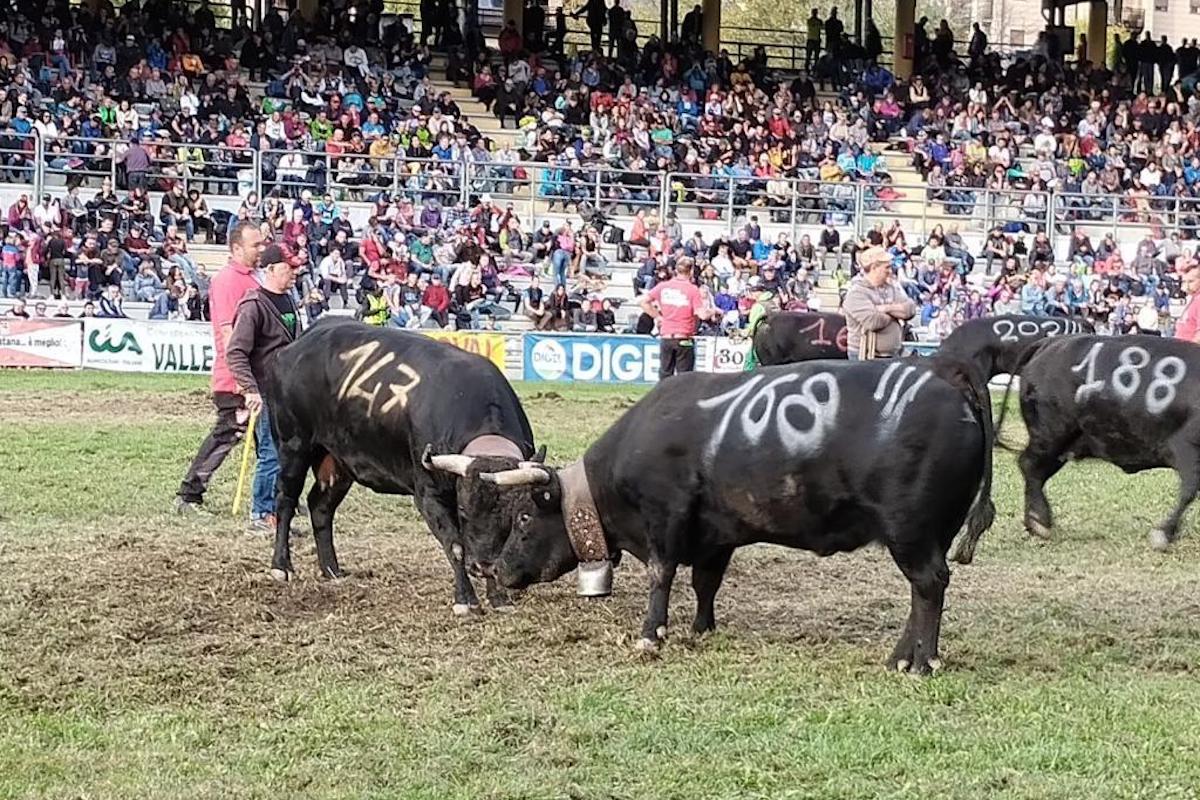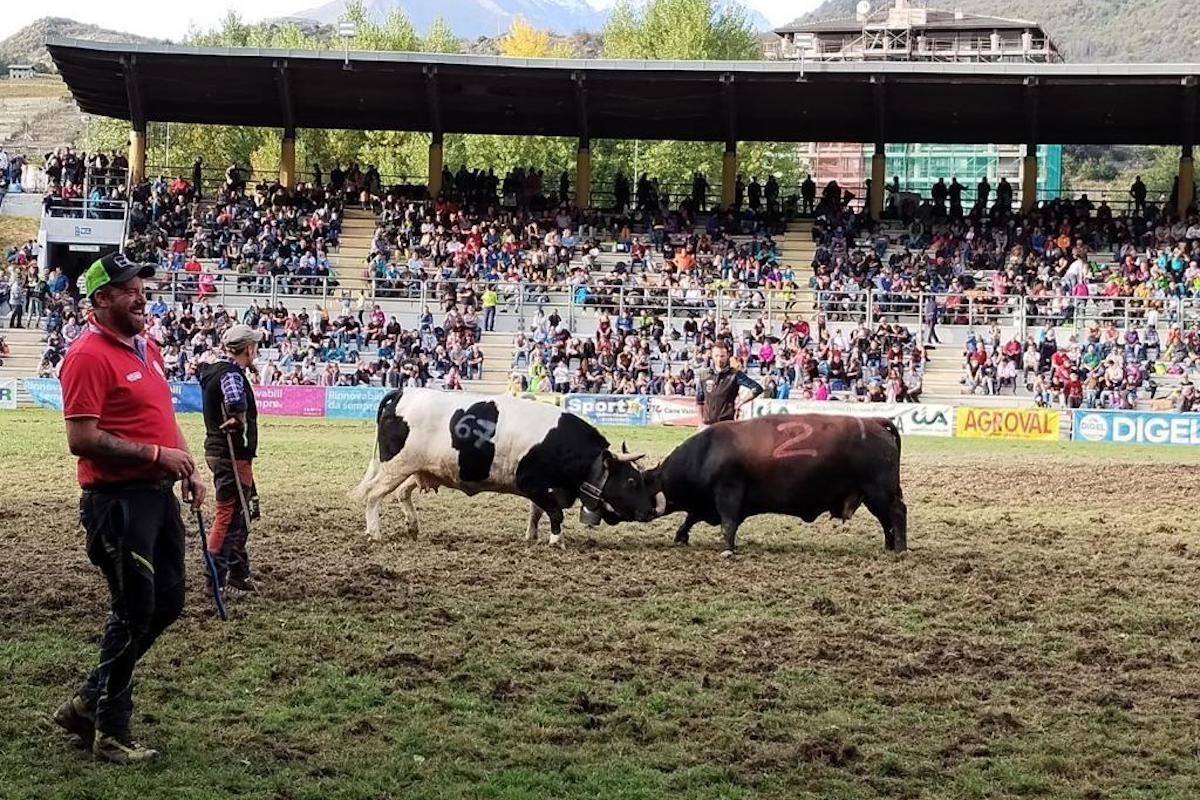 Pur senza la numero 1, il concorso dei pesi massimi ha riservato spettacolo a non finire: la finale tra Bandit e Merlo dei fratelli Diémoz, che si è classificata al secondo posto, è stata velocissima: a Bandit, protagonista di un concorso di altissimo livello, è bastato uno sguardo e un accenno di contatto per avere la meglio sull’avversaria.