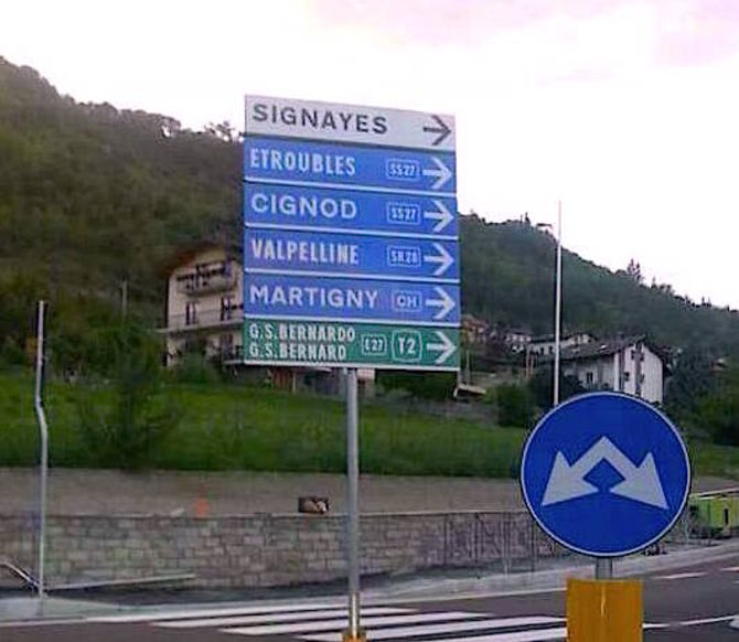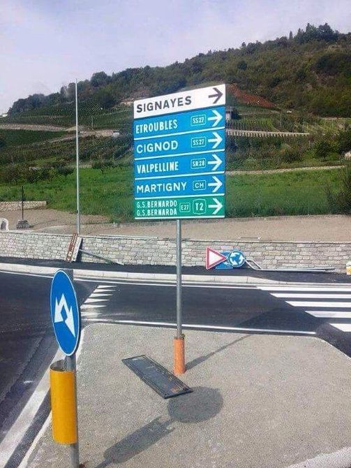 In ogni caso, il cartello di nessuno – Il Comune di Aosta dice che quel tratto è di competenza dell’Anas e viceversa – questa mattina è stato sostituito con la dicitura corretta. Potere del web. Chissà se il buon esempio sarà seguito anche per il cartello che da tempo sulla statale 26, in direzione Courmayeur, indica lo svincolo per il comune di "VILLENUEVE".
