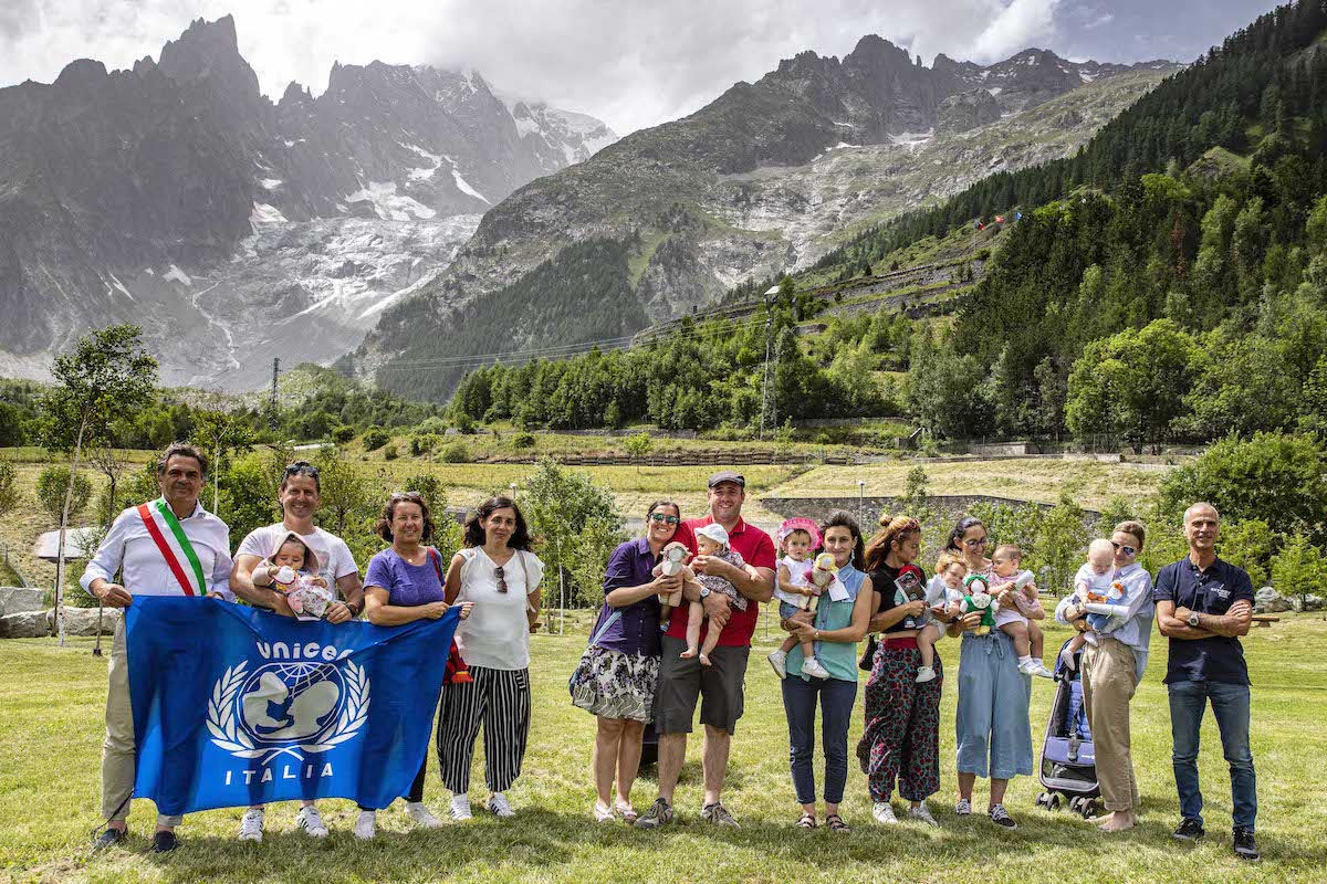 Nel giorno del solstizio d’estate, martedì 21 giugno, sono state consegnate a Courmayeur le Pigotte dell’Unicef ai nuovi nati nel 2021, nell’ambito del progetto “Per ogni bambino nato, un bambino salvato.  Quest’anno la cornice in cui si è svolta la consegna è stata la collina dei ciliegi a Skyway.