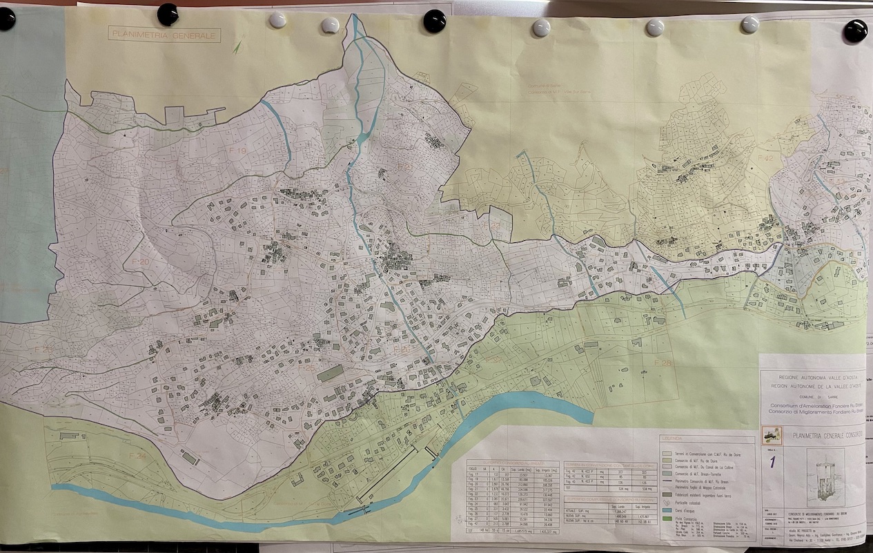 Ogni territorio ha i suoi problemi e particolarità, tanto che qui a Sarre ci sono cinque diversi Consorzi, ognuno con il suo perimetro d’interresse. Il nostro consorzio interessa la zona che va dal confine con Saint-Pierre, fino all’abitato di Chesallet, dalla statale fino alla strada comunale di Bellon”, spiega Fabrizio Comé, geometra e presidente del Consorzio di miglioramento fondiario Rû Bréan, “noi siamo anche fortunati perché abbiamo impianti relativamente recenti che non richiedono grossi lavori di manutenzione, ma sono stati costruiti quando c’era molta più acqua. La difficoltà principale che abbiamo adesso è la siccità, cosa che ci crea delle difficoltà di scorrimento nell’impianto, pensato per una massa d’acqua molto più grande. Questo porta ad una mancanza di pressione per cui l’acqua che c’è non riesce ad arrivare in alcune zone”.