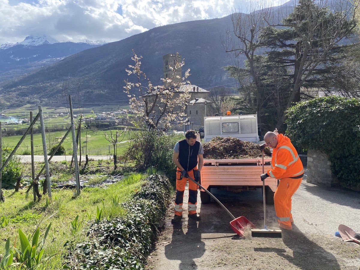 Questo sabato 23 marzo 147 persone, tra cui volontari, consorziati e diverse famiglie con bambini, si sono riunite presso il Comune di Sarre per la Corvée. I volontari sono poi stati divisi in squadre dai rappresentanti dei consorzi, per coprire i principali punti di interesse per i lavori di manutenzione: dai ruscelli per l’irrigazione nel verger del castello di Sarre, ai sentieri attorno all’abitato, ai canali dei torrenti. Per facilitare i lavori più pesanti, come lo spostamento di alberi caduti oppure minimi crolli di muri a secco, anche alcuni volontari dei vigili del fuoco locali e cantonieri con piccoli mezzi da lavoro.