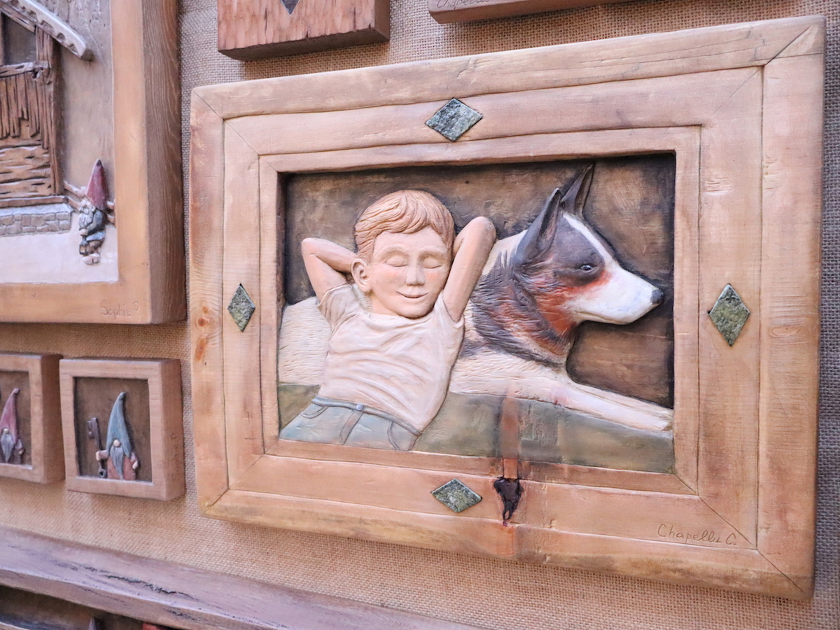 “Durante la pandemia c’era una volpe che mi veniva a trovare”. Per questo le volpi sono state le prime protagoniste delle creazioni in legno di Chantal Chapellu, 35 anni di Verrayes. “Amo la natura e l’interazione tra questa e l’essere umano”. Per quest’anno, sul banco 99, il suo ‘pezzo nuovo’ è un pastorello in jeans appisolato su di un cane.