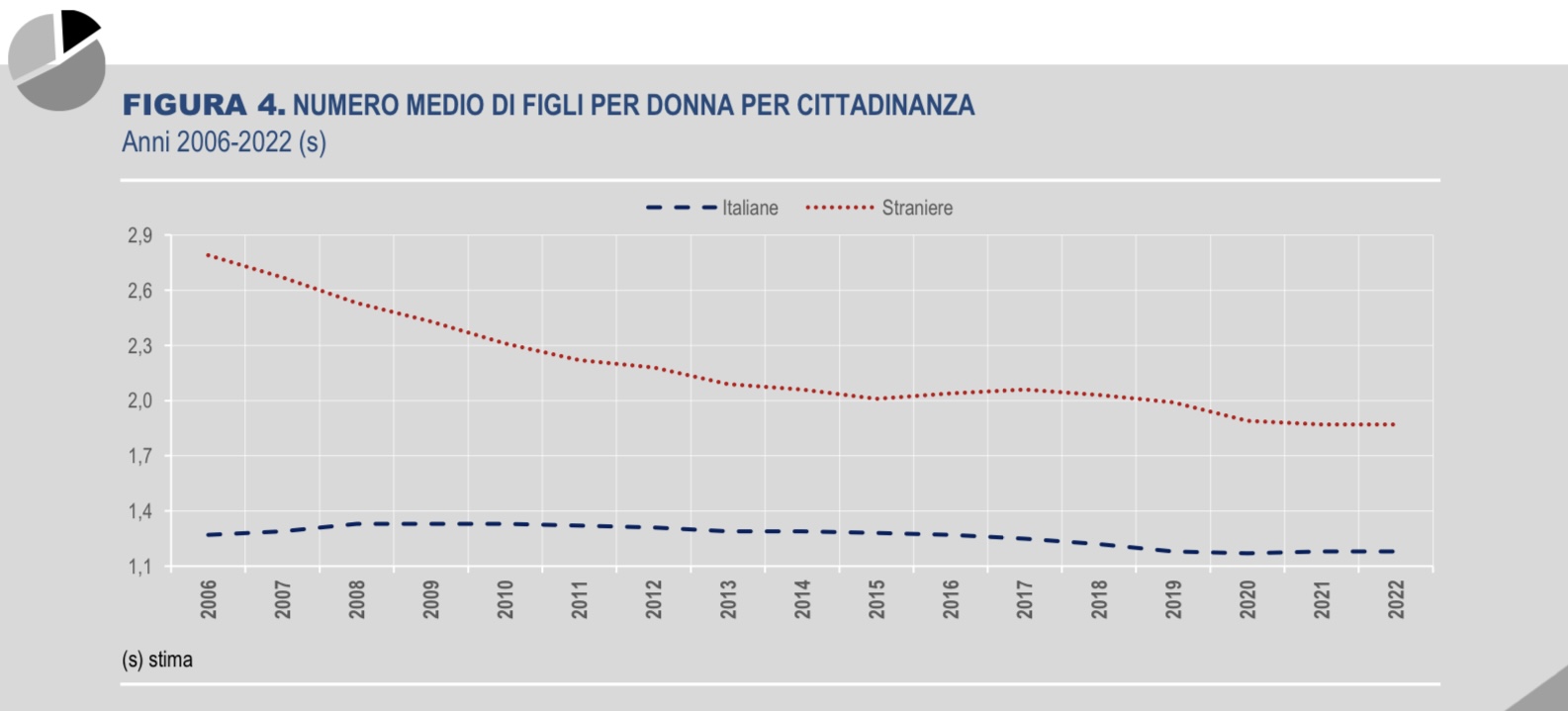 Secondo gli studiosi, l’ accentuazione della denatalità si deve alla complementare diminuzione della popolazione femminile in età feconda, tra i 15 e i 49 anni. Inoltre, negli ultimi anni si è ridotto l’apporto generato dalla componente straniera, a oggi pari all’8,6% dei residenti totali.