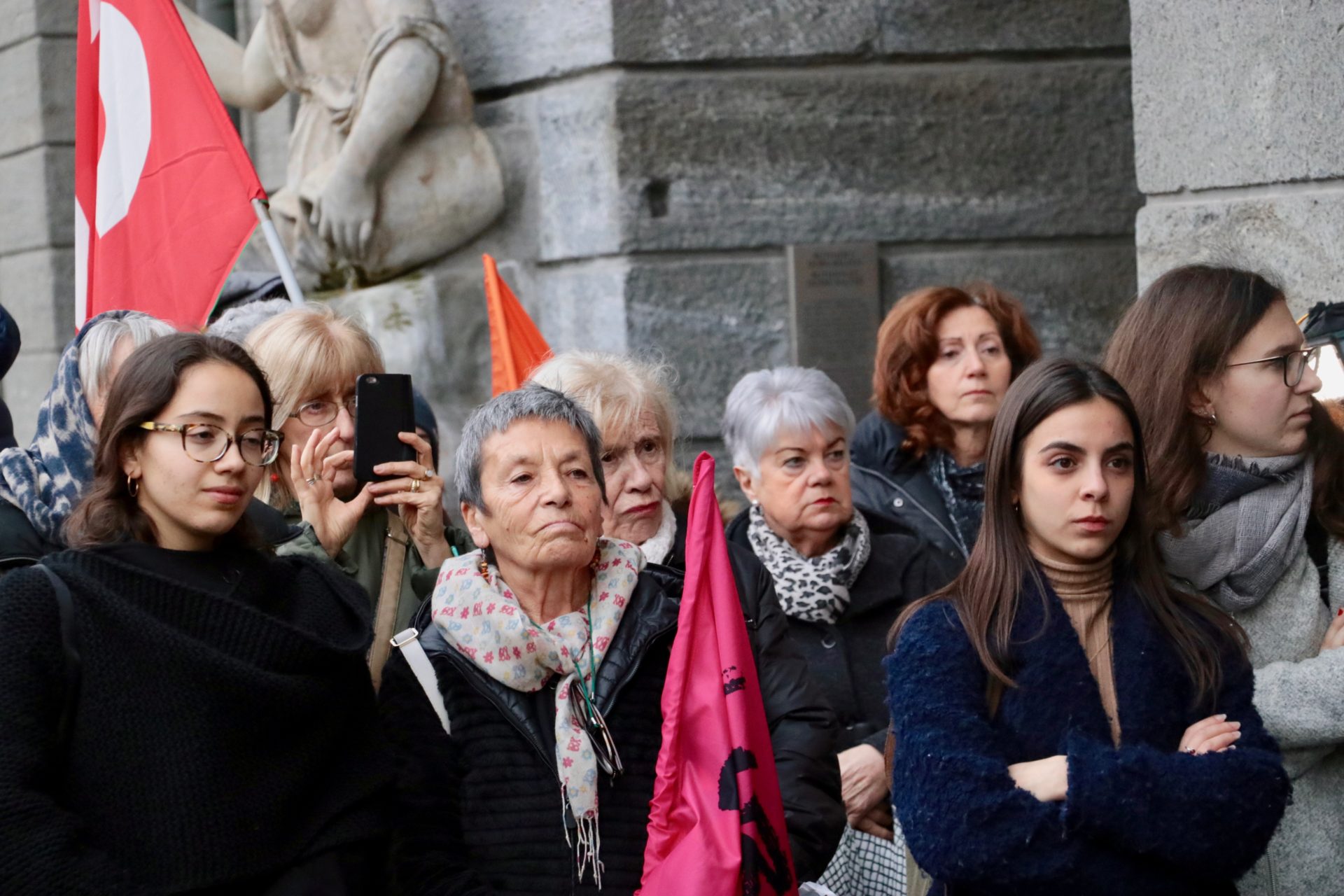 Le sue parole hanno chiuso la manifestazione, che era partita in Piazza Roncas, tra cori e striscioni.