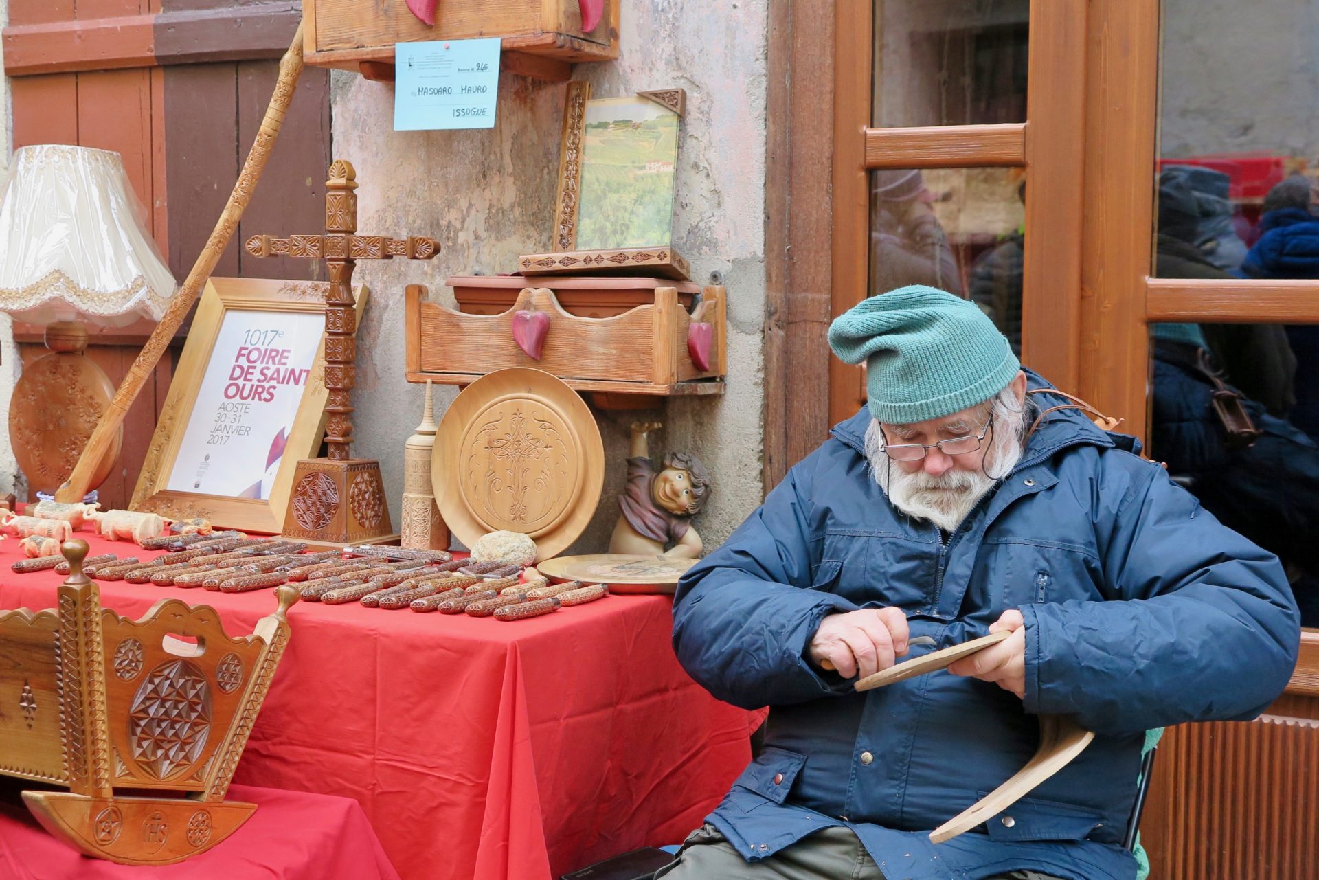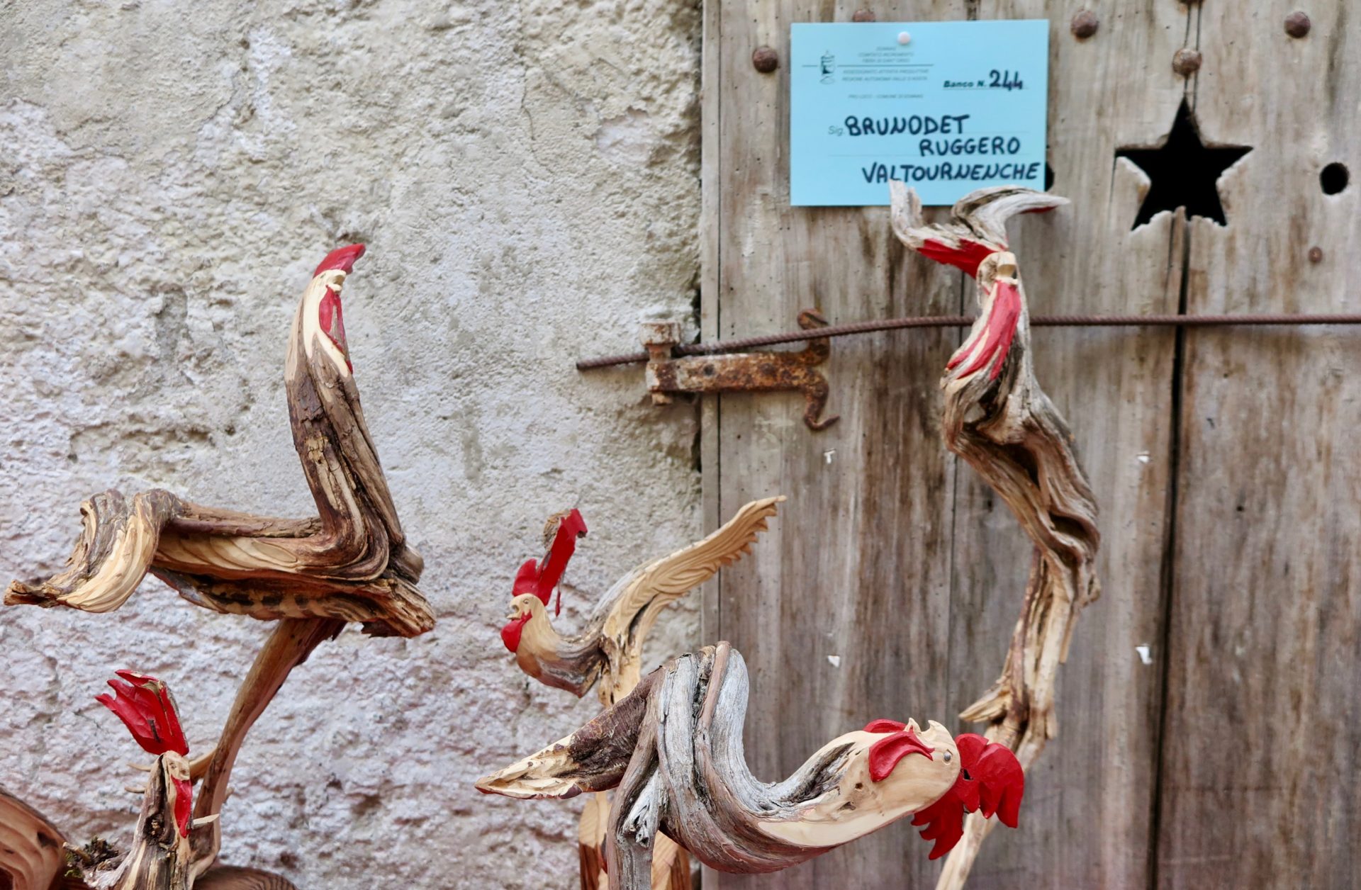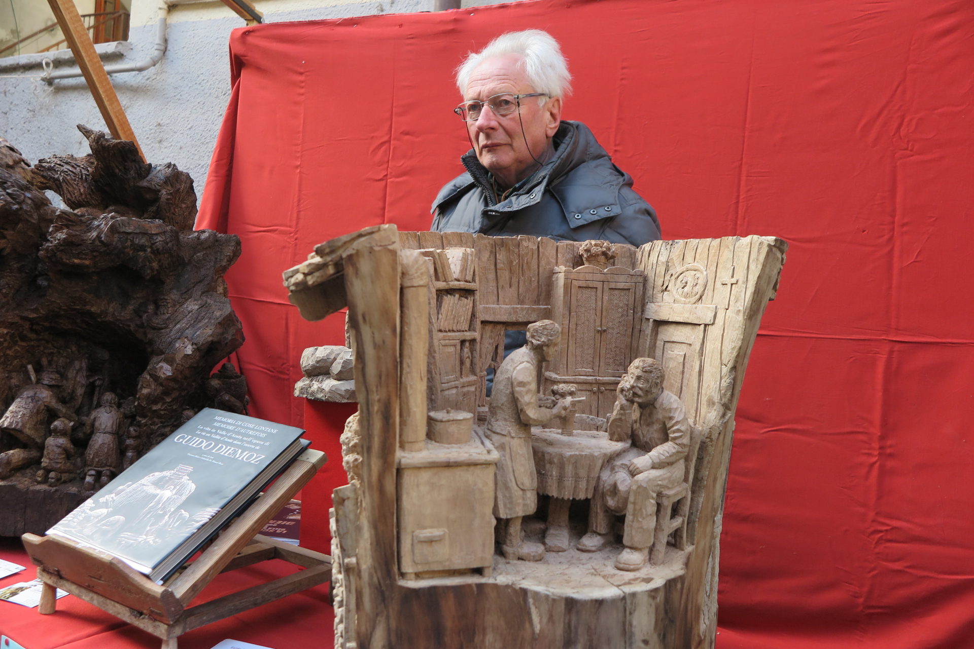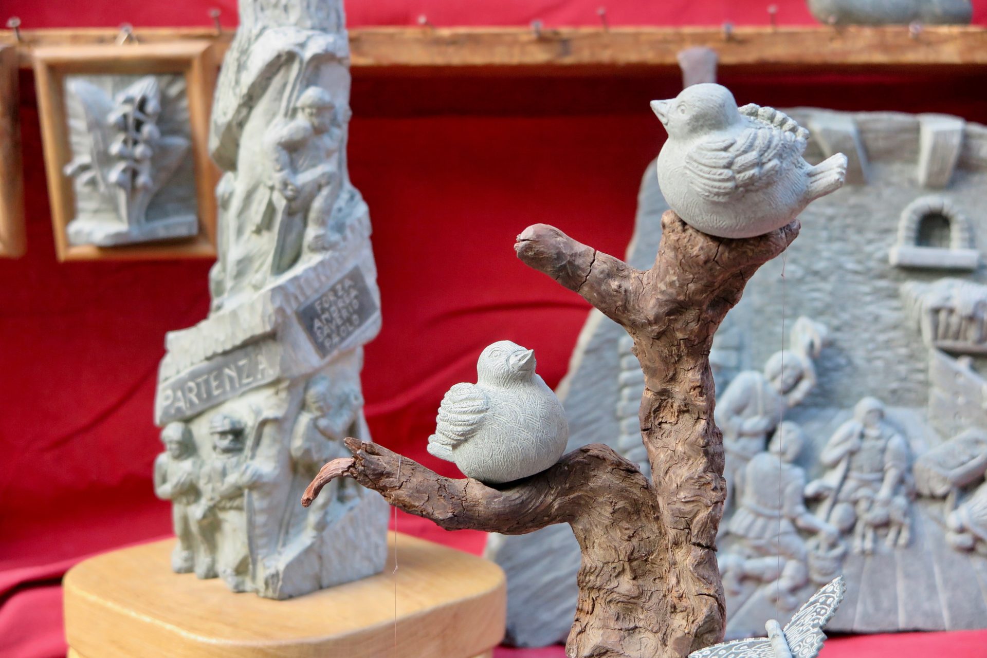 La Fiera di Donnas si conferma un appuntamento che richiama gli artigiani provenienti dalle Valli. C’è chi arriva da Doues, come Guido Diémoz che da otto anni consecutivi vince il premio della “sezione scultura”. Quest’anno presenta l’opera “Lo Secret”, realizzata in circa quattro mesi su legno di noce. Una donna intenta nella pratica giace in una stanza, mentre sulle scale esterne le persone attendono in coda il loro turno. C’è chi, come i fratelli Ferrari, ricerca nelle Valli di Champorcher e di Gressoney la pietra ollare da lavorare per poi affiancarla al legno di castagno.