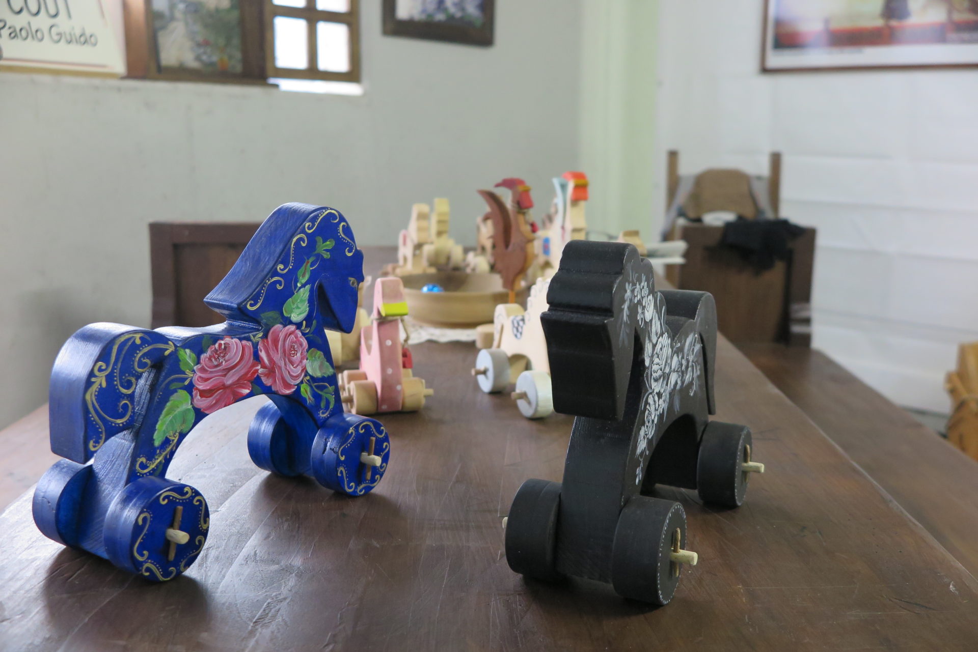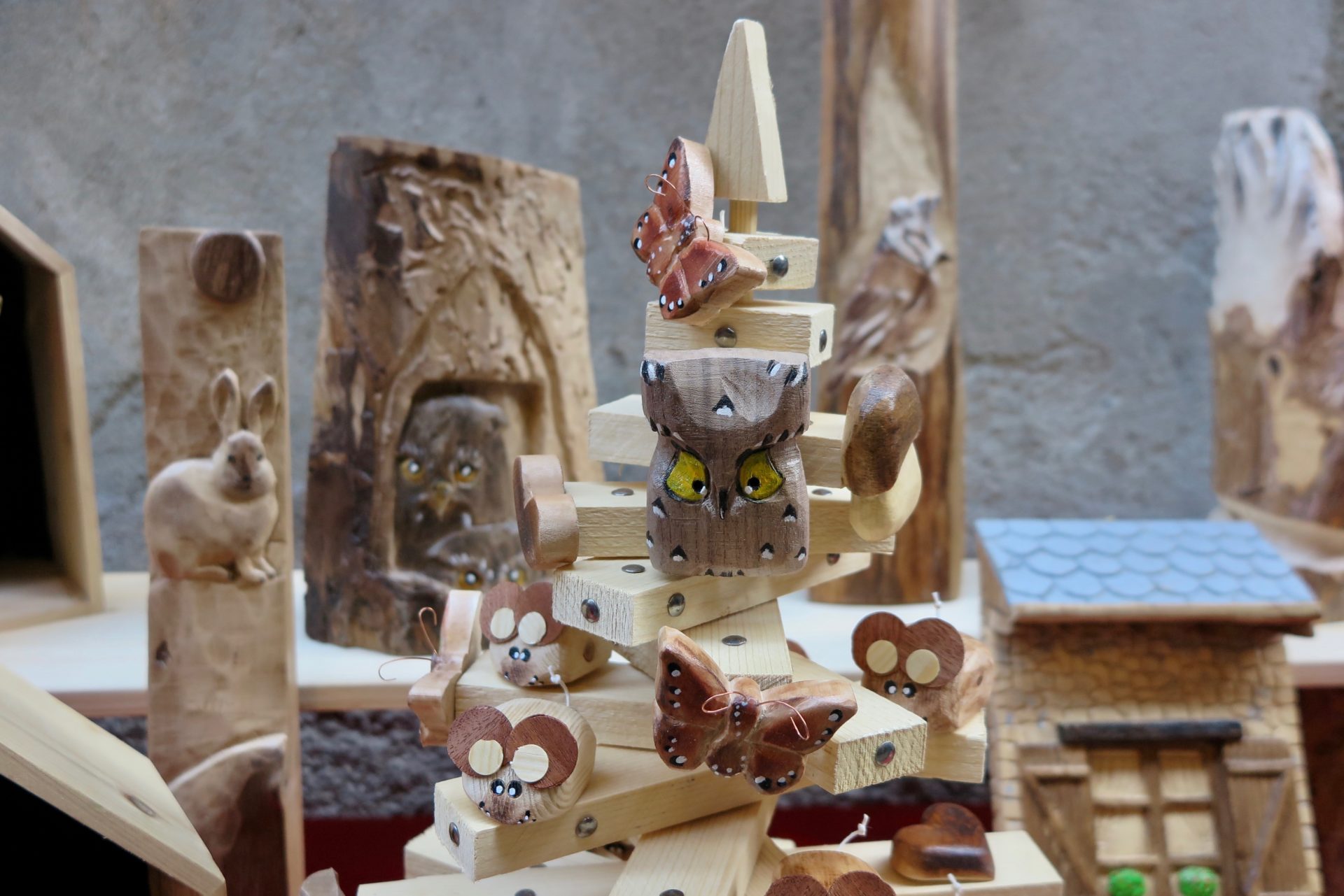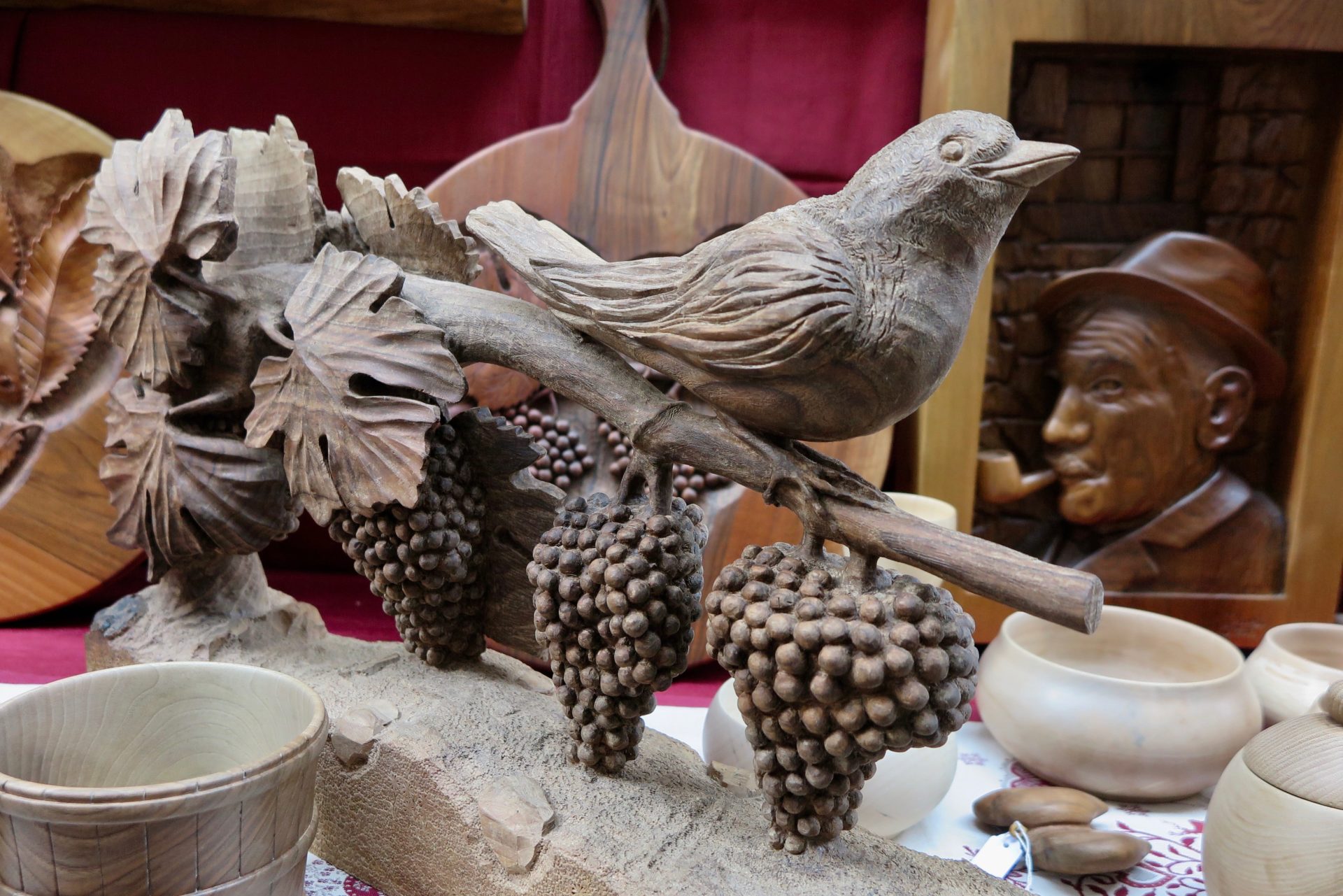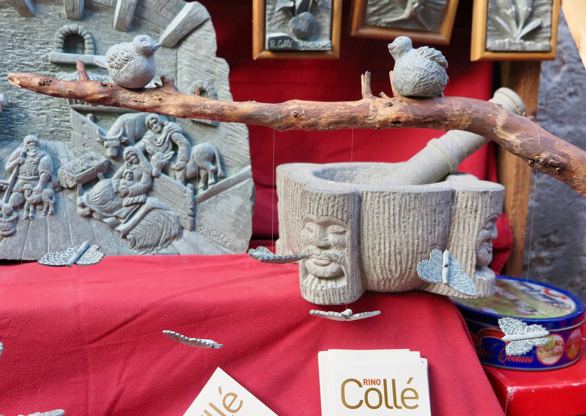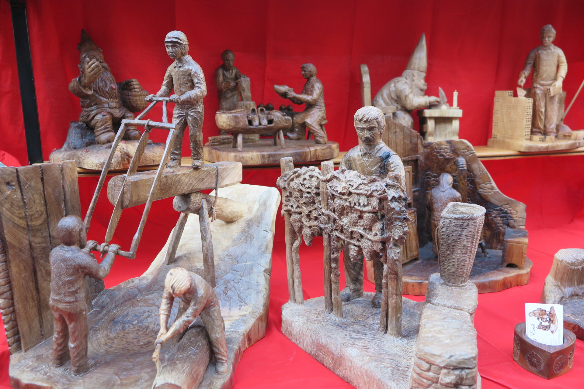 La Fiera di Donnas si conferma un appuntamento che richiama gli artigiani provenienti dalle Valli. C’è chi arriva da Doues, come Guido Diémoz che da otto anni consecutivi vince il premio della “sezione scultura”. Quest’anno presenta l’opera “Lo Secret”, realizzata in circa quattro mesi su legno di noce. Una donna intenta nella pratica giace in una stanza, mentre sulle scale esterne le persone attendono in coda il loro turno. C’è chi, come i fratelli Ferrari, ricerca nelle Valli di Champorcher e di Gressoney la pietra ollare da lavorare per poi affiancarla al legno di castagno.