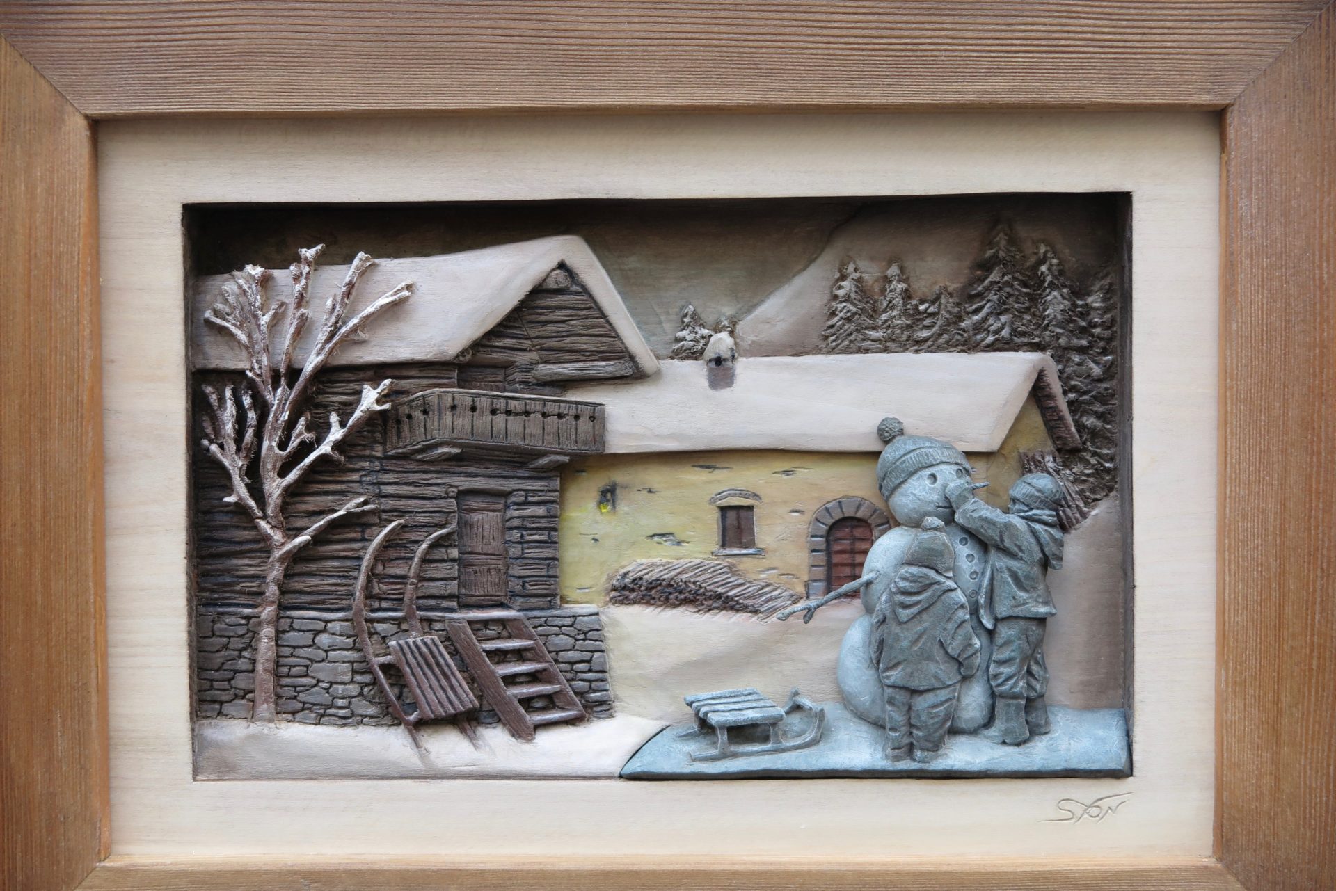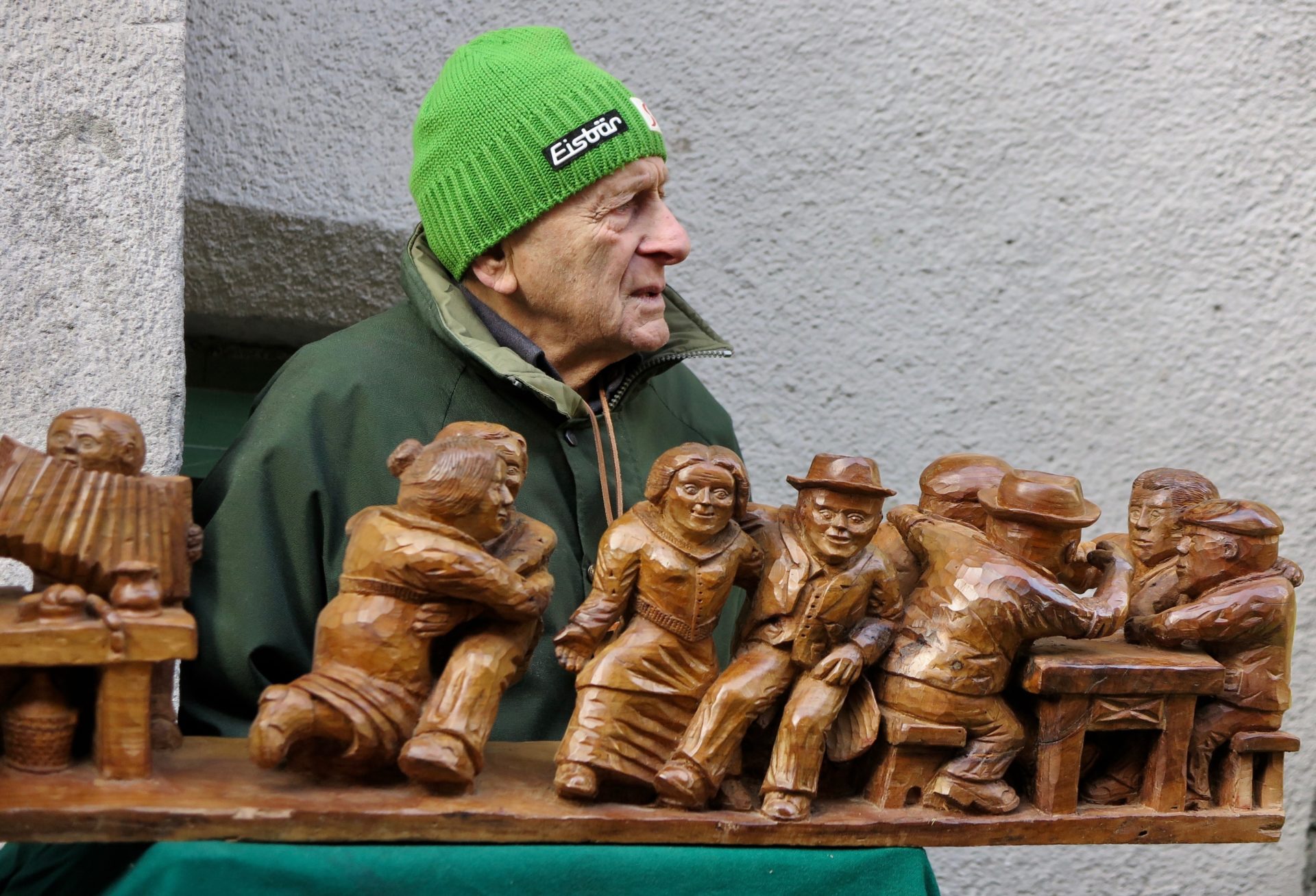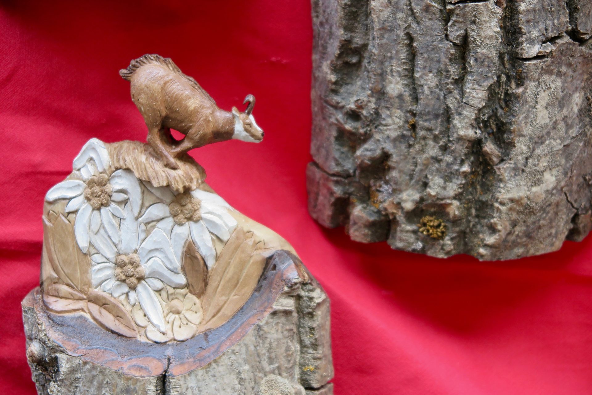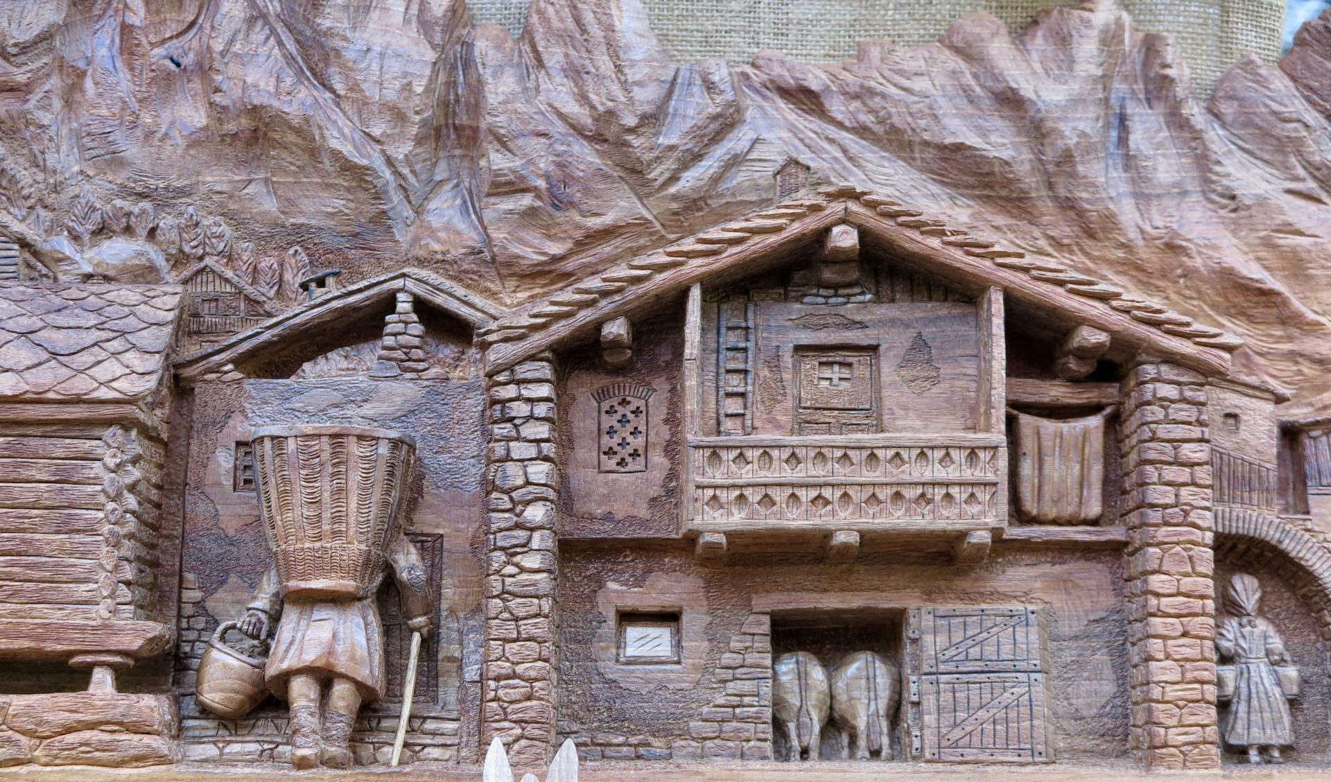 Un appuntamento da sempre legato alla tradizione non solo per i materiali utilizzati dagli artigiani, ma anche per le rappresentazioni create. Erick Bionaz, che dal 2005 partecipa alla Fiera, presenta su una tavola in legno di noce, un pezzo unico di due metri e quaranta, la trasformazione del pane nero. Dalla raccolta alla posa sulle rastrelliere in legno. Senza trascurare la macinazione al mulino, l’impasto e l’uscita del pane dal forno.