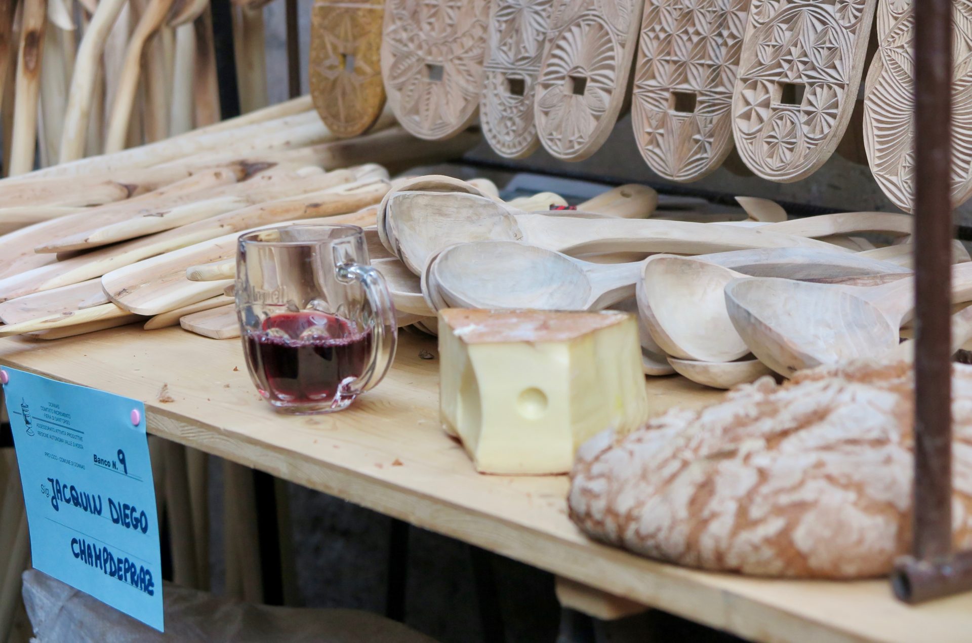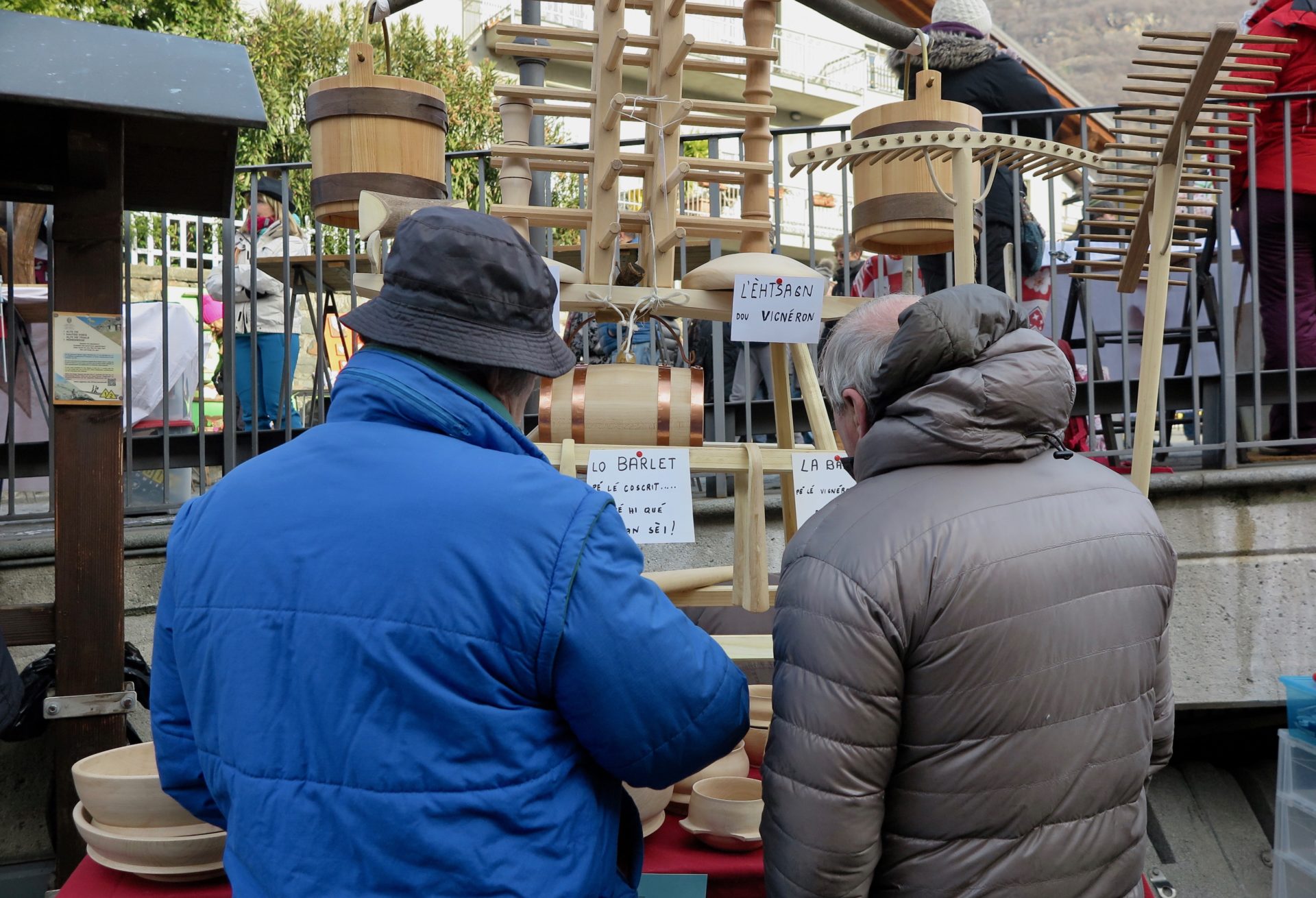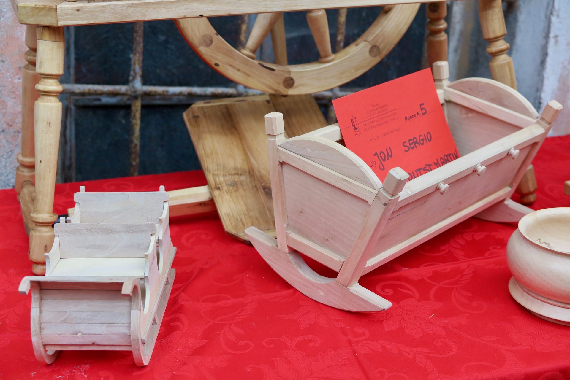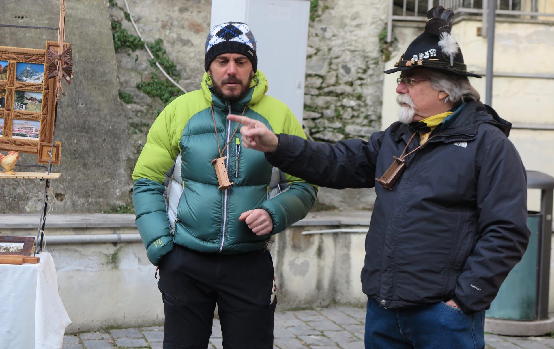I visitatori, valdostani e turisti, si lasciano cullare dalla folla tra un banchetto e l’altro. Ed è proprio una culla, realizzata da La Tsenevalla, il ciondolo simbolo dell’edizione 2020.