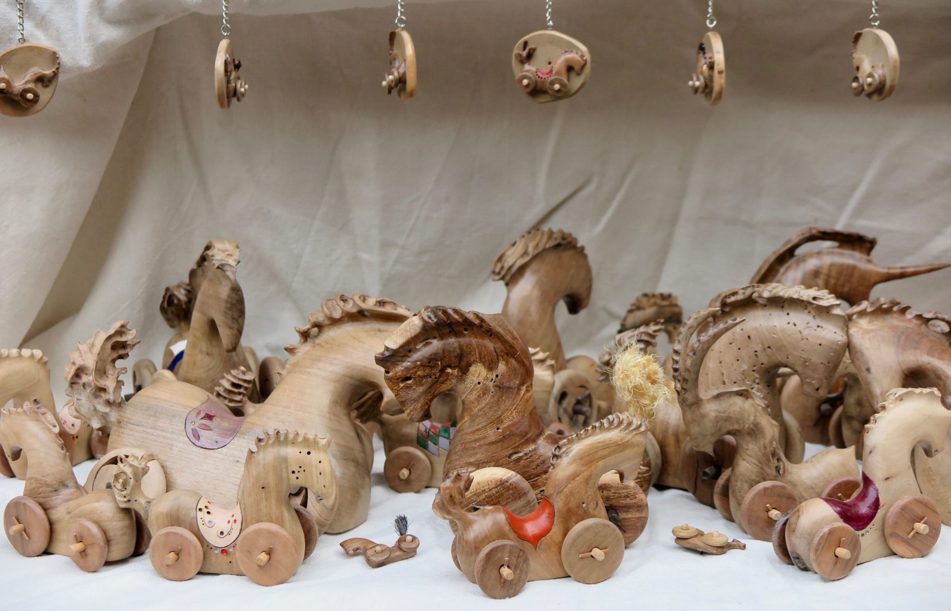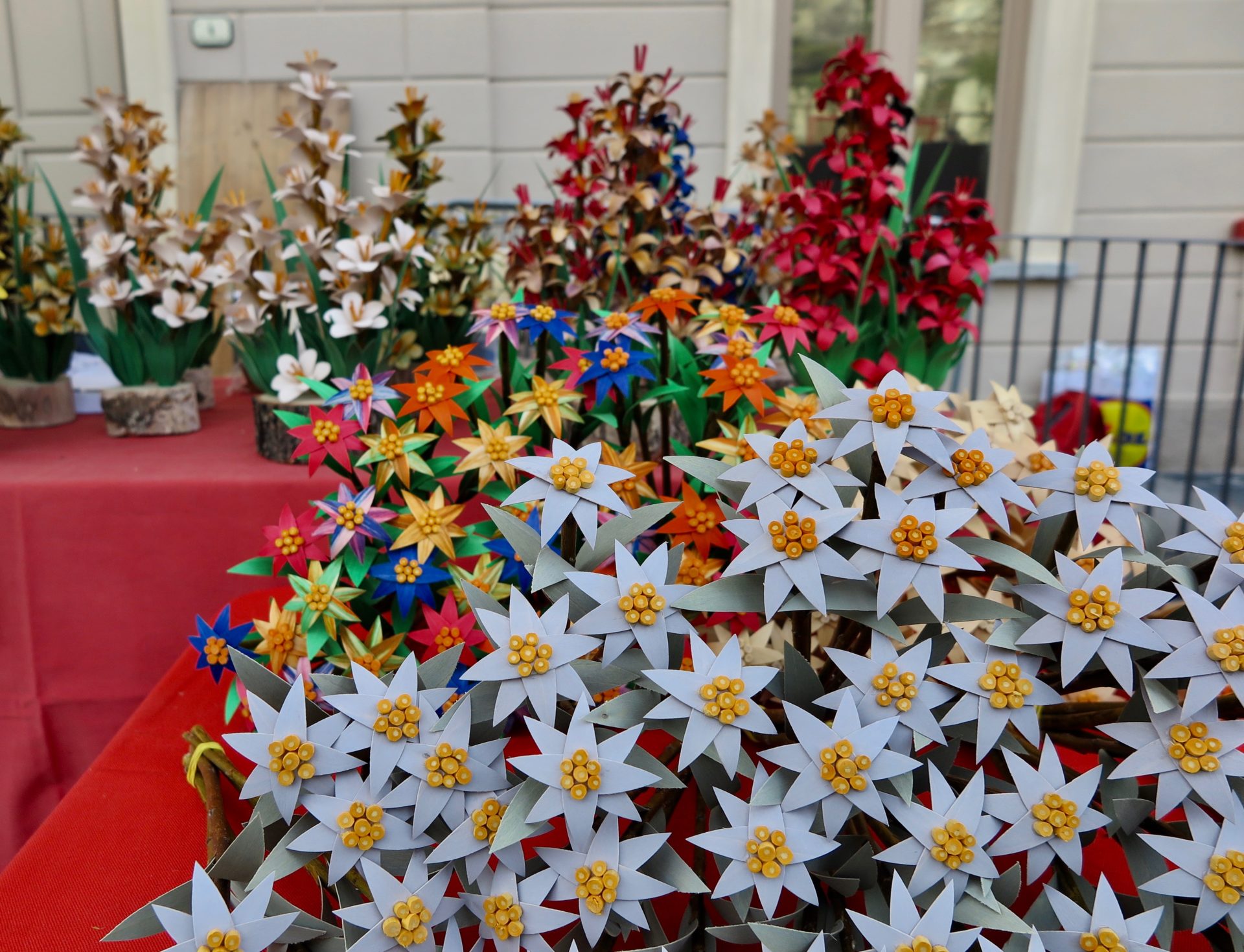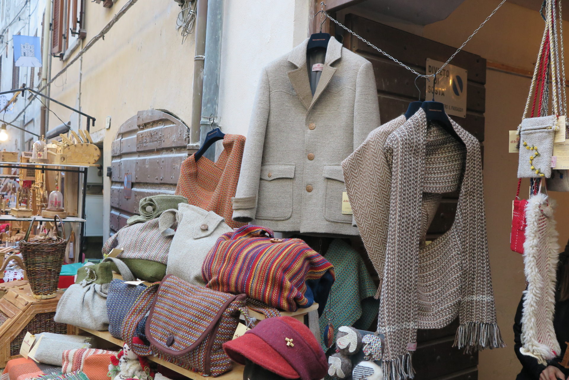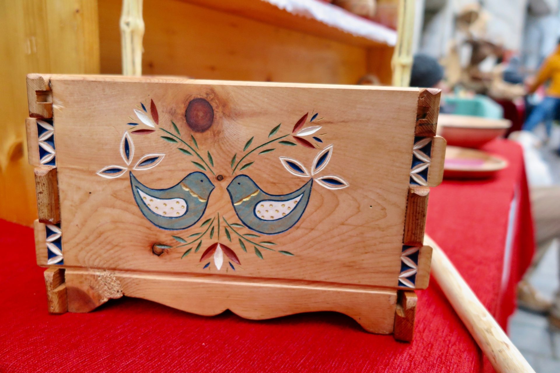 I visitatori, valdostani e turisti, si lasciano cullare dalla folla tra un banchetto e l’altro. Ed è proprio una culla, realizzata da La Tsenevalla, il ciondolo simbolo dell’edizione 2020.