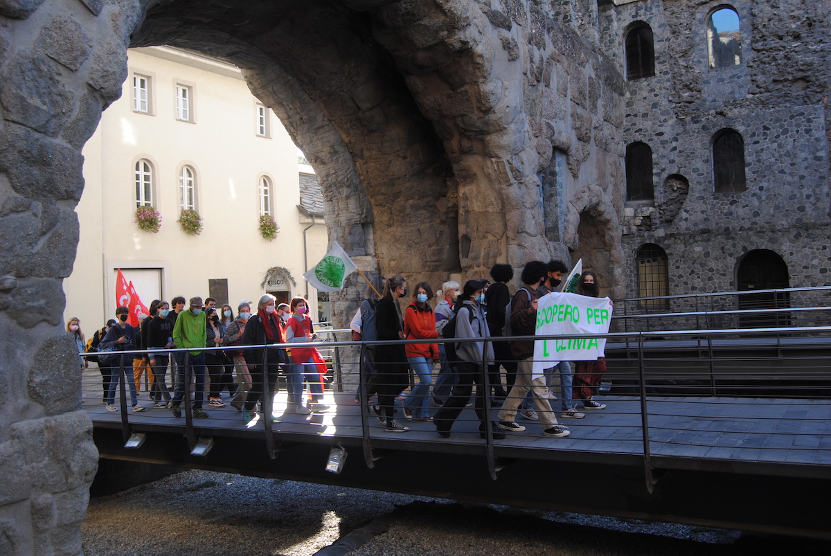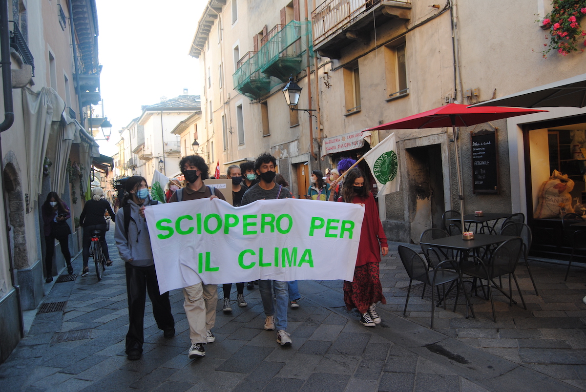 Una cinquantina i ragazzi in corteo, partiti questa mattina dall'Arco di Augusto in direzione piazza Chanoux. Le richieste, messe globalmente in secondo piano dall'emergenza sanitaria, sono quelle di sempre: risposte e soprattutto decisioni politiche per salvare il pianeta.