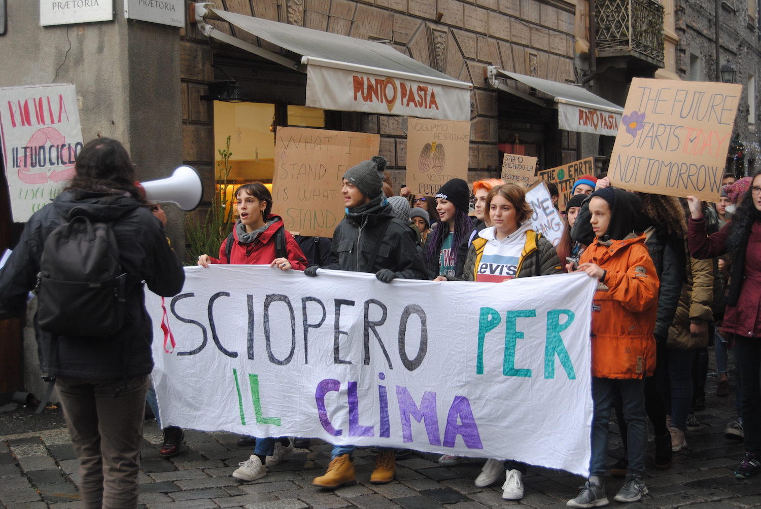 Circa 150 i giovani partiti alle 9.30 circa da piazza Narbonne per questo quarto sciopero globale, scandendo gli slogan in difesa del pianeta, in direzione Cittadella dei Giovani dove saranno in programma delle attività di sensibilizzazione e un dibattito.