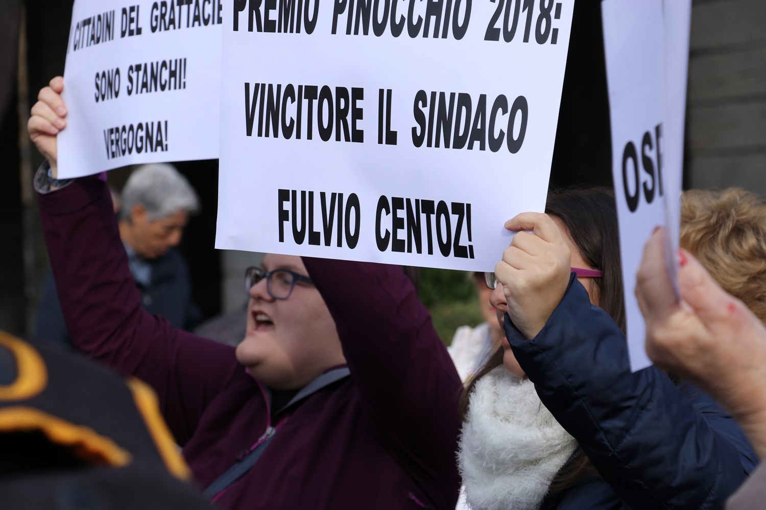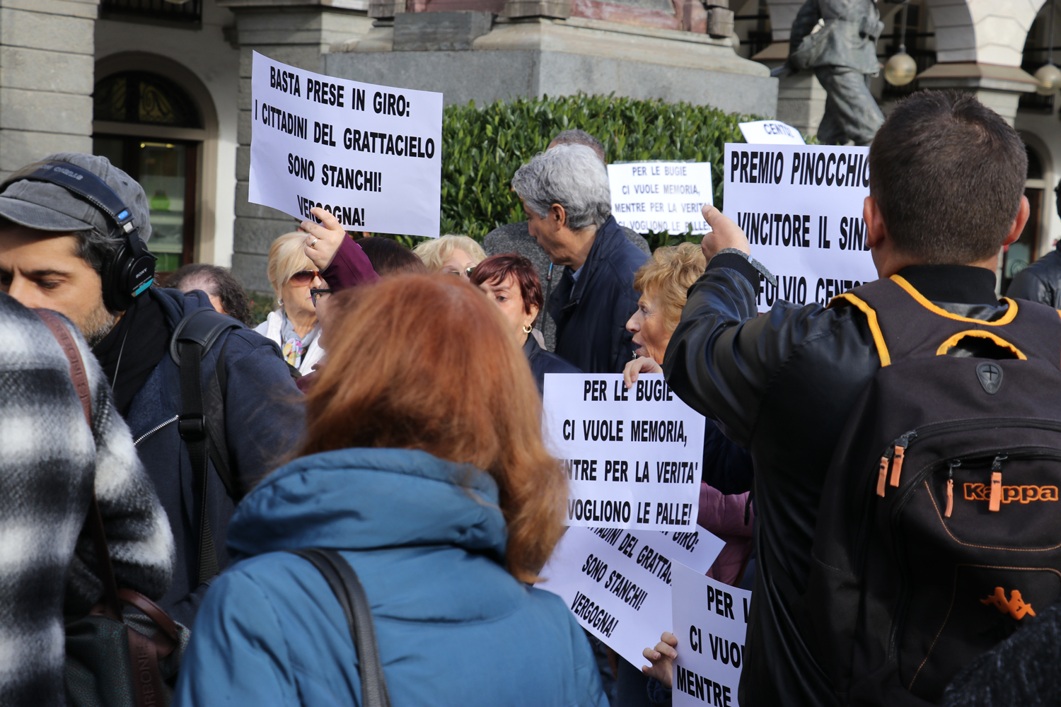 Sono arrivati in piazza Chanoux questa mattina gli inquilini del Grattacielo di Aosta per gridare la propria rabbia. Urla e cori rivolti in primis al sindaco di Aosta, Fulvio Centoz a cui, con un cartello esposto da un manifestante, hanno consegnato anche il “Premio Pinocchio 2018”.