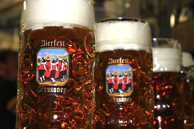 La “Bierfest” di Gressoney-Saint-Jean ha aperto i battenti ieri sera, giovedì 20 giugno, con l’apertura del padiglione e della botte, momento simbolico di inizio di una festa che dai primi anni ’80, quando nacque come semplice festa di paese, è diventata un appuntamento di riferimento per la Valle d’Aosta e non solo. Sul piazzale del Weissmatten, nei pressi dell‘omonima seggiovia, scorreranno tanti litri di birra, circa 15 mila, birra chiara contenuta in un‘unica grande botte, al fine di mantenere intatte tutte le pregiate caratteristiche che la rendono così apprezzata e unica. La birra è quella prodotta nella birreria del Barone Beck Peccoz, gressonaro emigrato molti anni or sono nell‘omonima cittadina di Kühbach, in Germania.