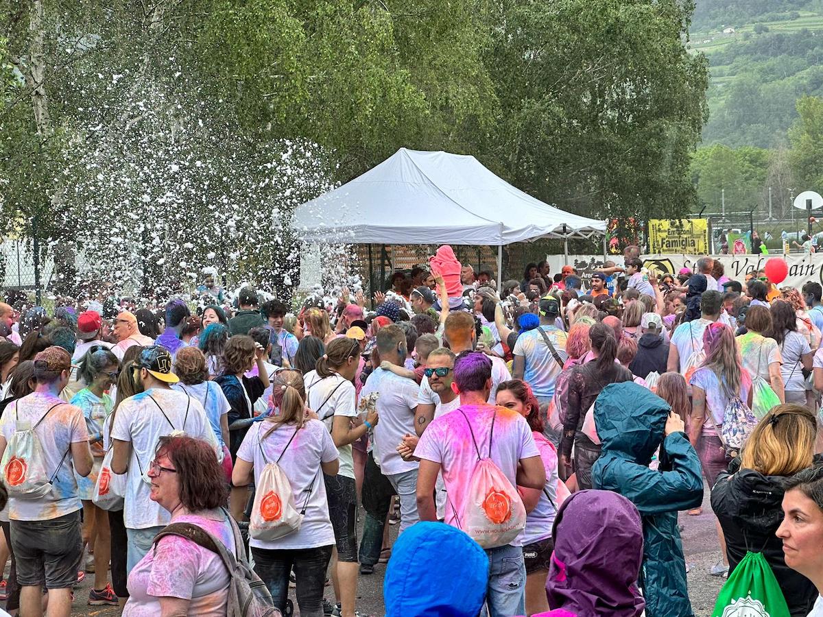 La quinta edizione della Holi Splash Run ha nuovamente riempito il campo sportivo di Sarre di musica, risate e tanti colori. Centinaia di persone tra bambini, adulti e ragazzi hanno partecipato alla manifestazione e alla corsa non competitiva “anche quest’anno siamo molto felici, la manifestazione è andata benissimo ci sono stati 2500 partenti per la corsa. Vorrei anche ringraziare i 70 volontari dell’Area6tu e della pro loco di Sarre grazie ai quali abbiamo tutti passato un bellissimo giorno di festa” dichiara Luca Spadaccino, l’Assessore al turismo e allo sport del comune di Sarre.