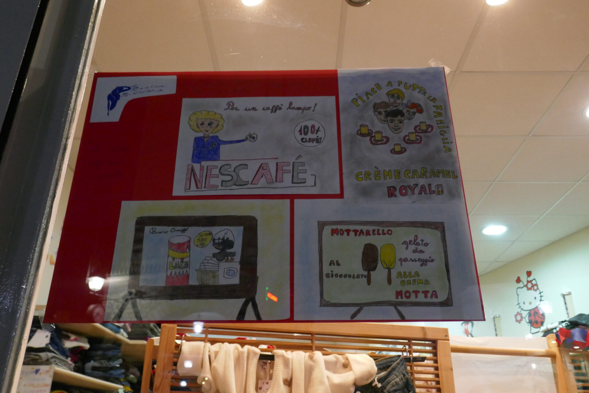 Nelle vetrine sono esposti anche i disegni dei bambini delle elementari e delle medie. Essi hanno fatto una ricerca sulla televisione “che per loro è una cosa scontata, ma fino a quegli anni lì non c’era” osserva Barsimi. “Sono esaltata da vedere quante cose belle hanno fatto. Questa è stata per loro un’ottima lezione di storia”.