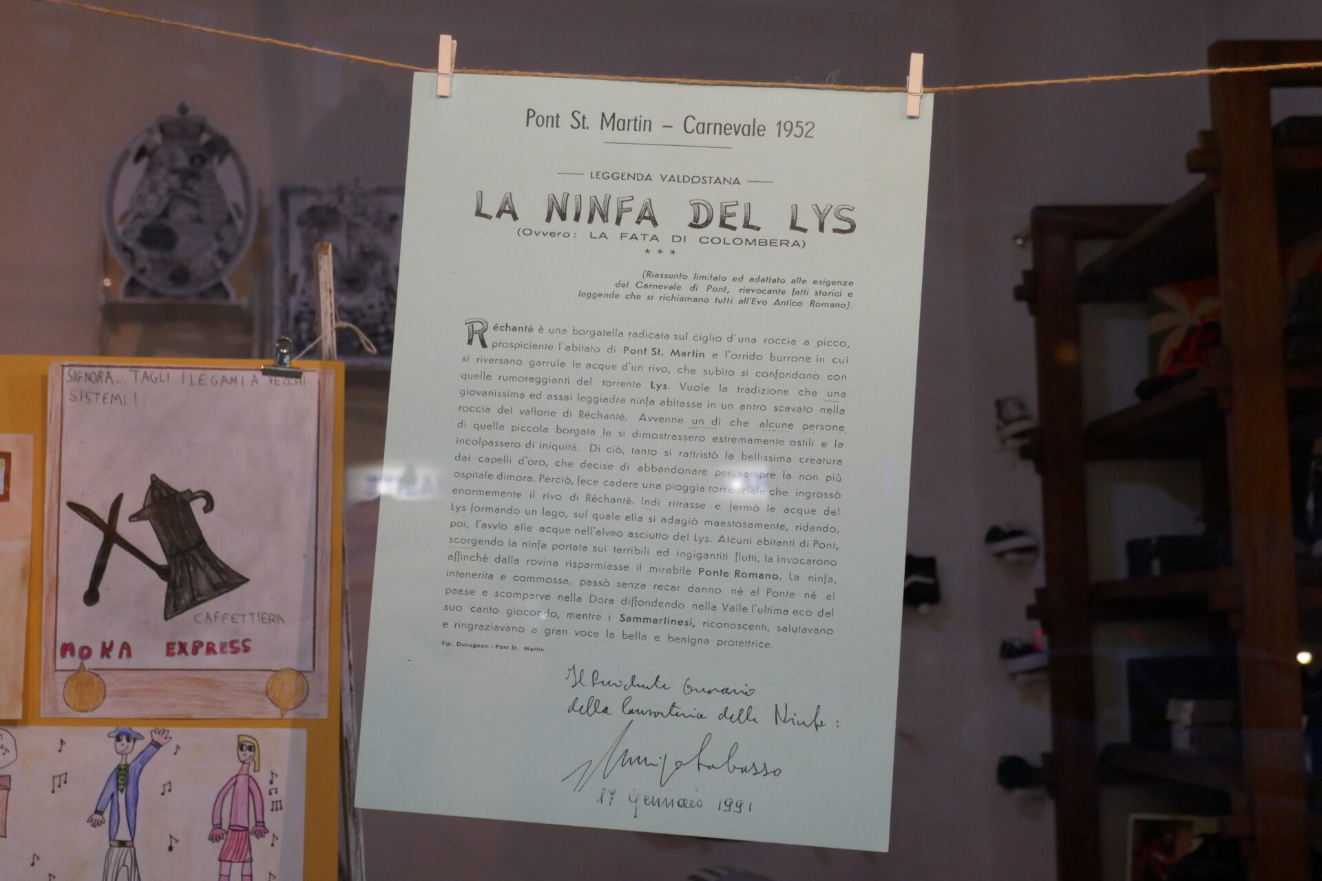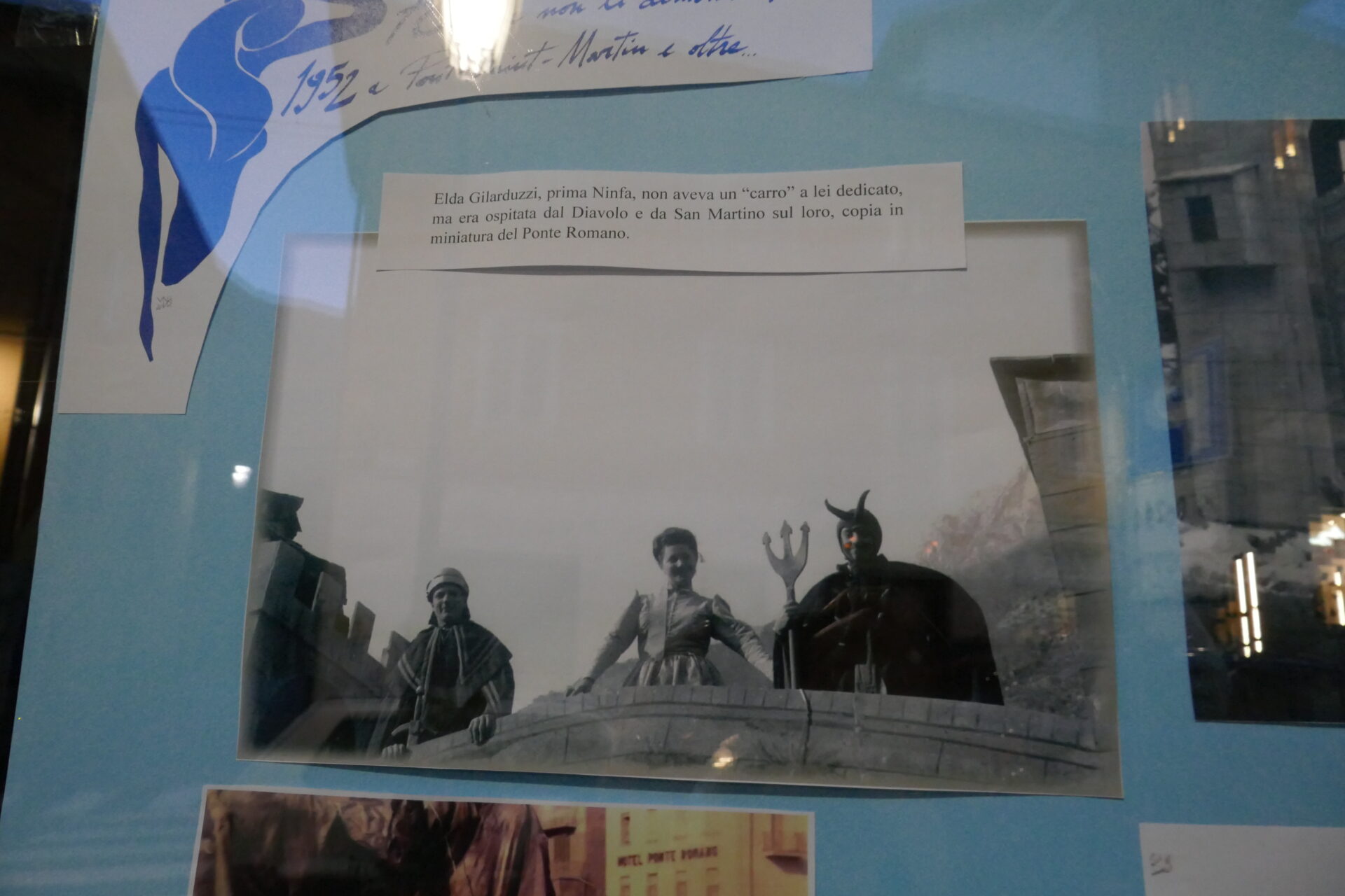 Infatti una volta si trattava di un unico carnevale: il corteo di Pont, proveniente dalla stazione, ai Prati si congiungeva con quello di Carema che veniva dal Cavallo Bianco, poi insieme andavano fino in piazza. I due carnevali si sono uniti proprio il primo anno della Ninfa; questo fatto è stato scelto come “nucleo” della mostra. “Da lì, focalizzandoci sul carnevale del ‘52, ci siamo allargati per far vedere com’era Pont-Saint-Martin e com’era la cultura in quegli anni”.
