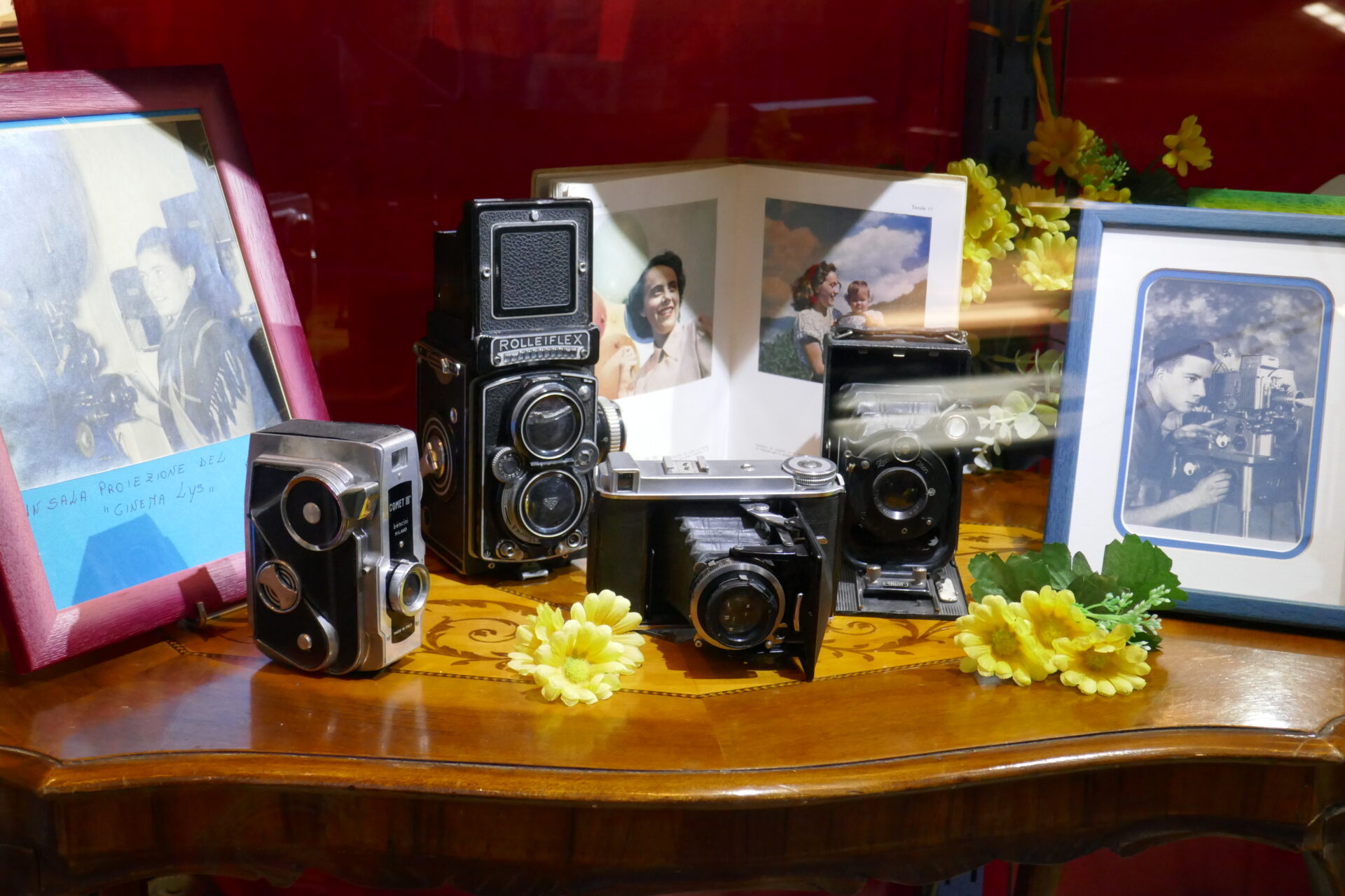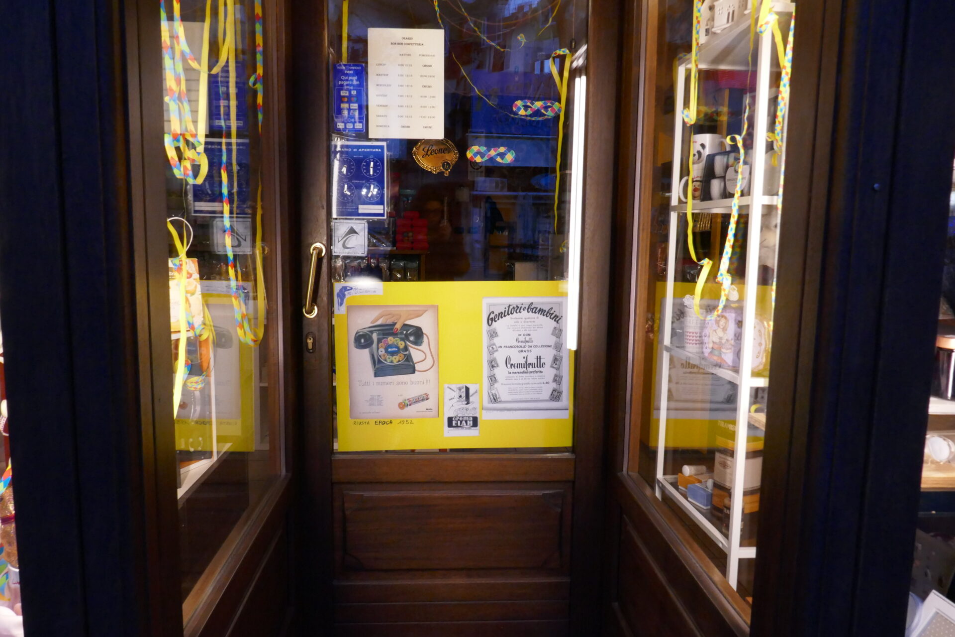 Gli oggetti esposti vanno da vestiti e borse d’epoca, alle macchine fotografiche e da cucire, a libri, radio, manifesti, fino alla Vespa autentica di quei tempi. Il materiale esposto è coerente con lo stampo del negozio: l’aspetto della moda è andato al negozio di vestiti, le scarpe al negozio di scarpe, la cartoleria alla libreria, e una réclame delle caramelle Dufour alla pasticceria.