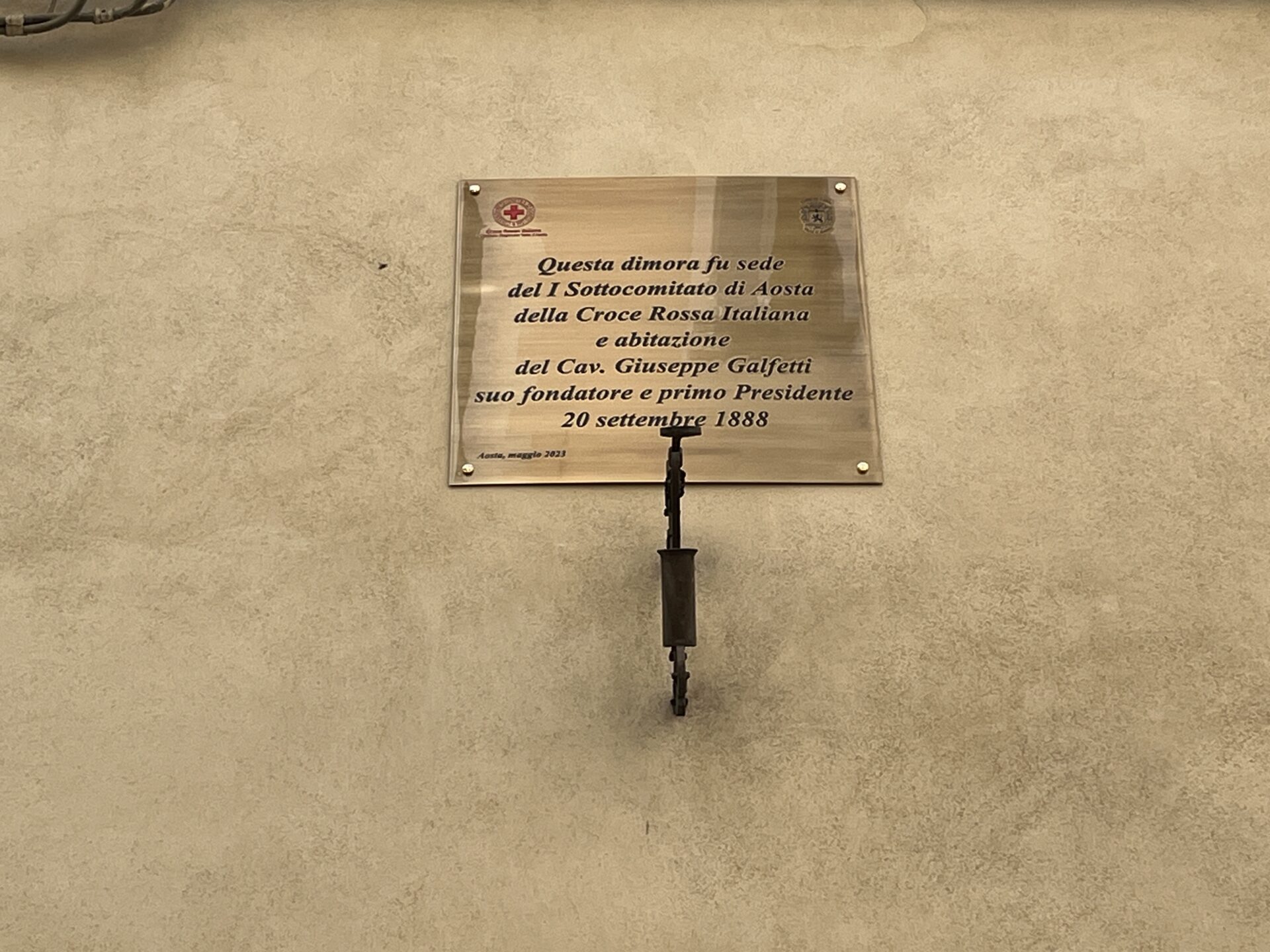 “Una volta raggiunta la pensione, Galfetti fonda e presiede il Comitato veterani 1878/1879 e, in egli stessi anni, riunisce nel proprio seminterrato ristrutturato e ritinteggiato la prima sezione valdostana della Croce rossa – ha raccontato il volontario nonché direttore dell’ufficio storico locale, Marco Negretto -. Grazie a una lunga ricerca dipanatasi su tre diversate strade, siamo a oggi in grado di collocare questa sede improvvisata tra gli attuali numeri civici 48 e 52 di Via Sant’Anselmo”.